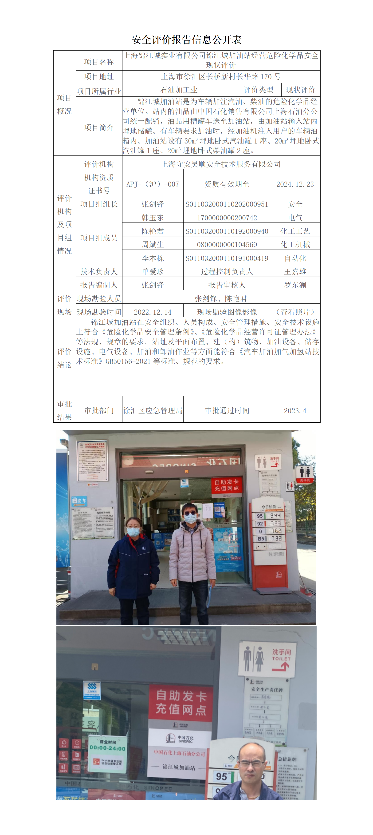 上海锦江城实业有限公司锦江城加油站安全现状评价