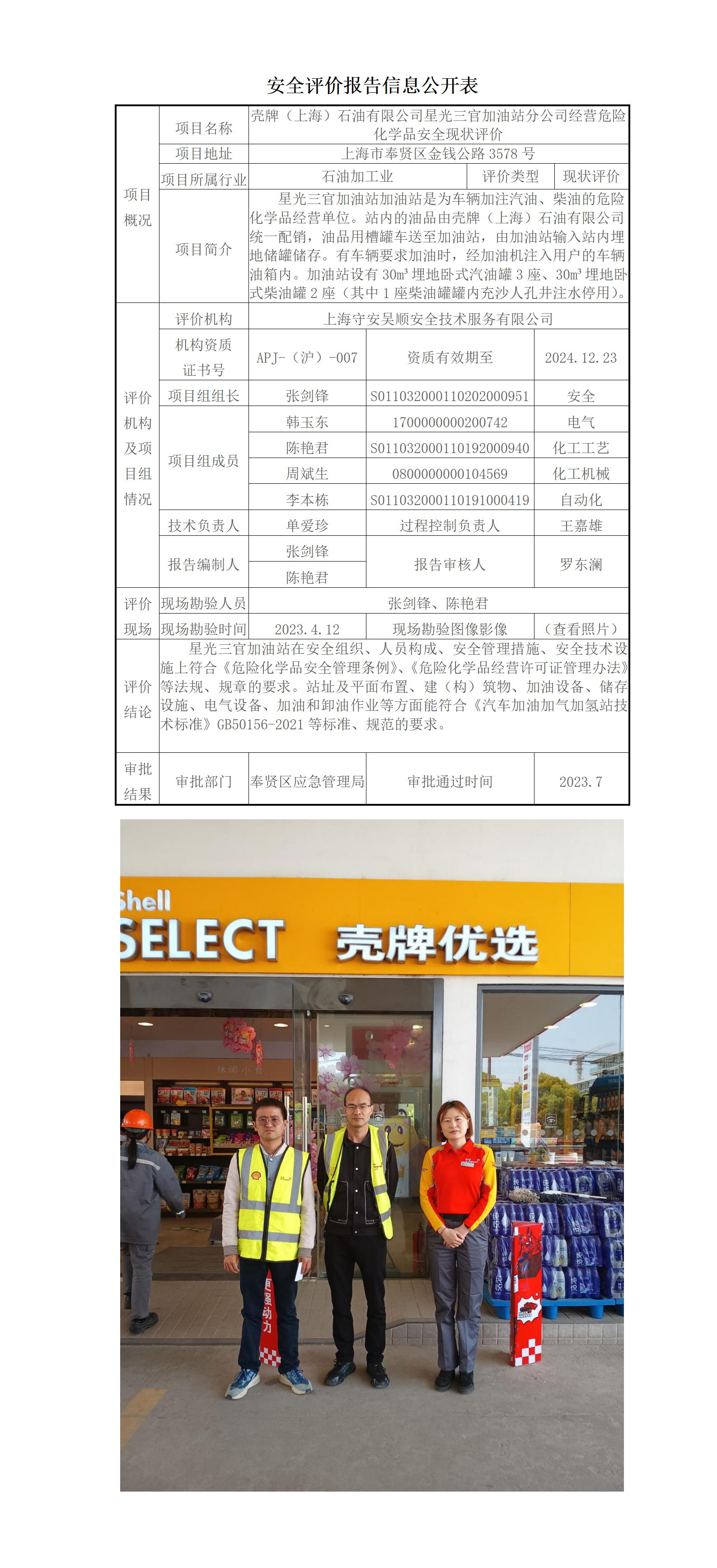 壳牌(上海)石油有限公司星光三官加油站分公司经营危险化学品安全现状评价