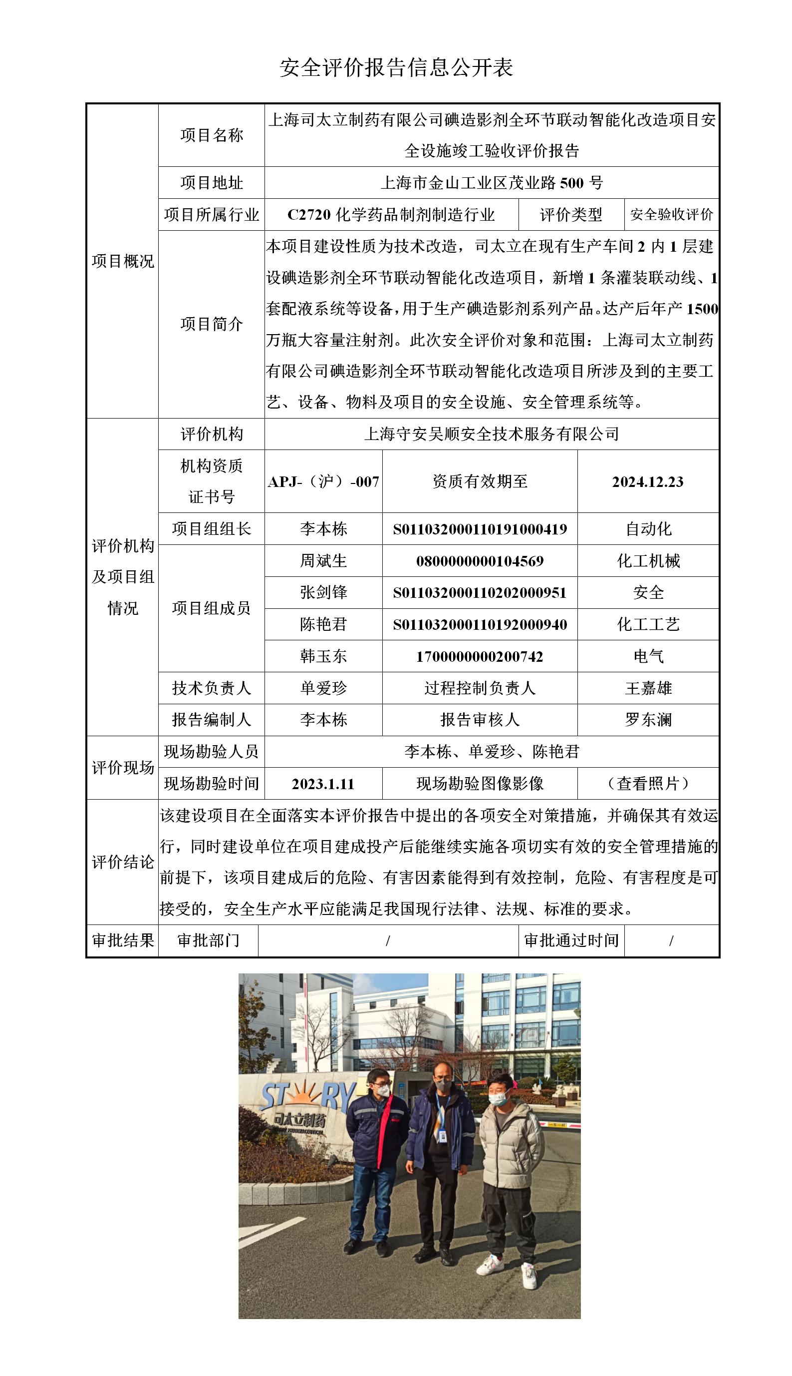 上海司太立制药有限公司碘造影剂全环节联动智能化改造项目安全设施竣工验收评价