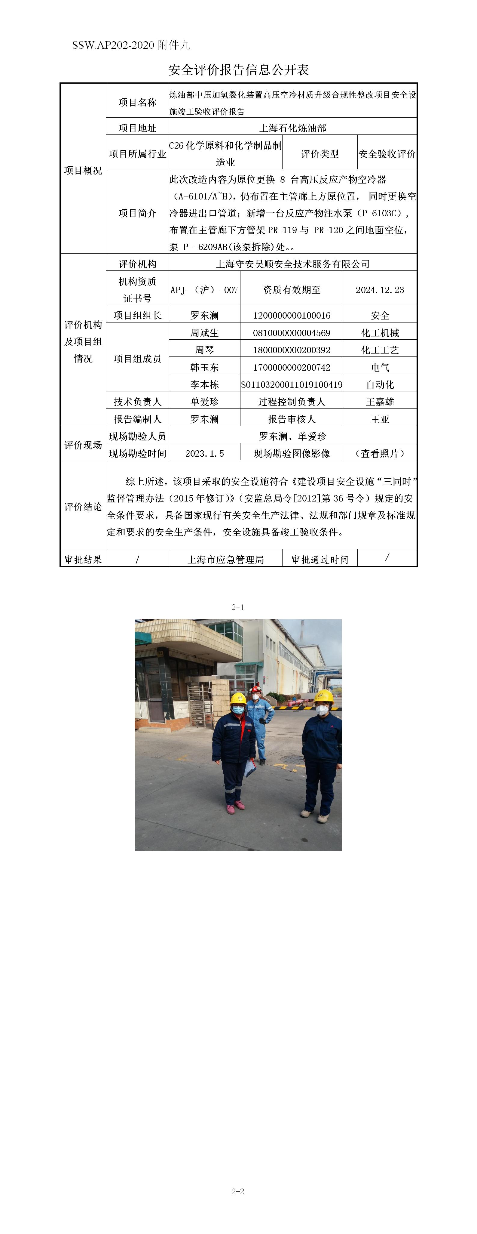 中国石化上海石油化工股份有限公司炼油部中压加氢裂化装置高压空冷材质升级合规性整改项目安全验收评价