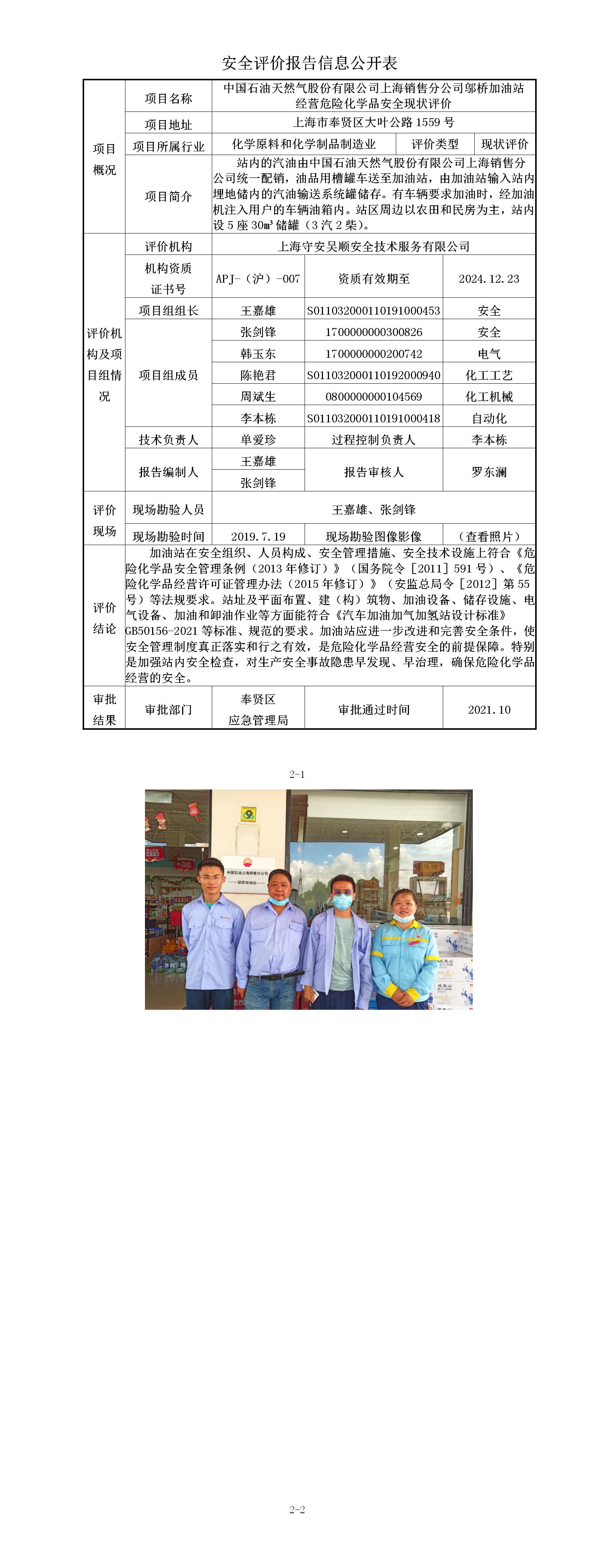 中国石油天然气股份有限公司上海销售分公司邬桥加油站 经营危险化学品安全现状评价