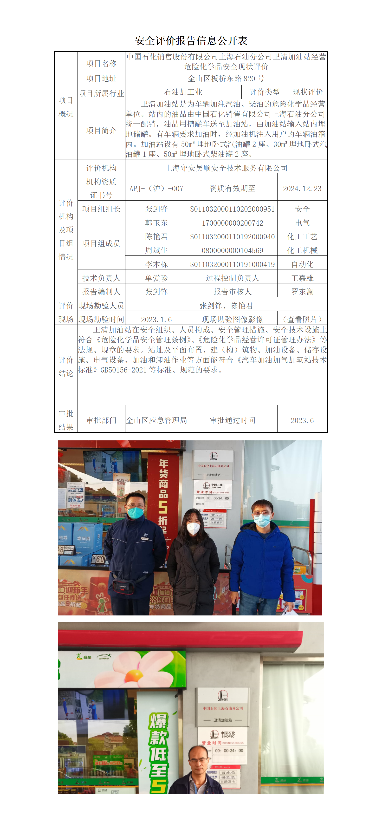 中国石化销售股份有限公司上海石油分公司卫清加油站安全现状评价