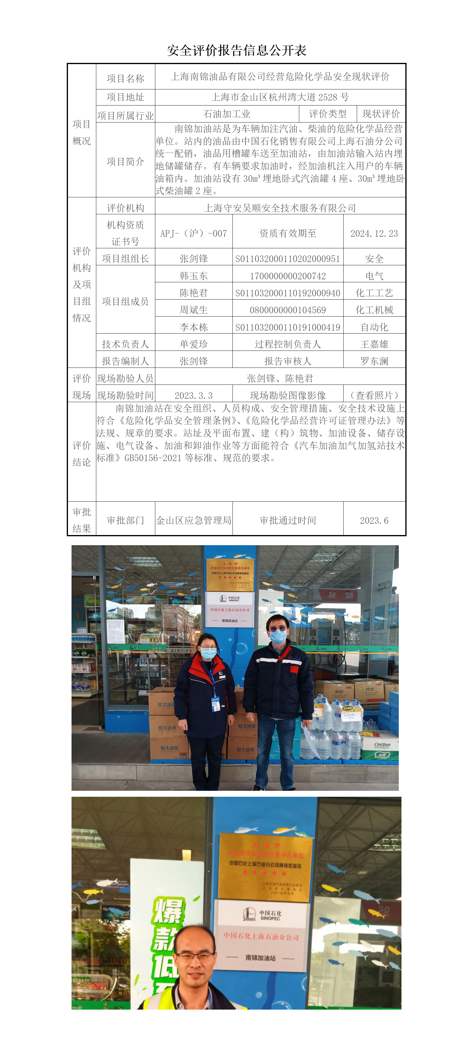 上海南锦油品有限公司安全现状评价