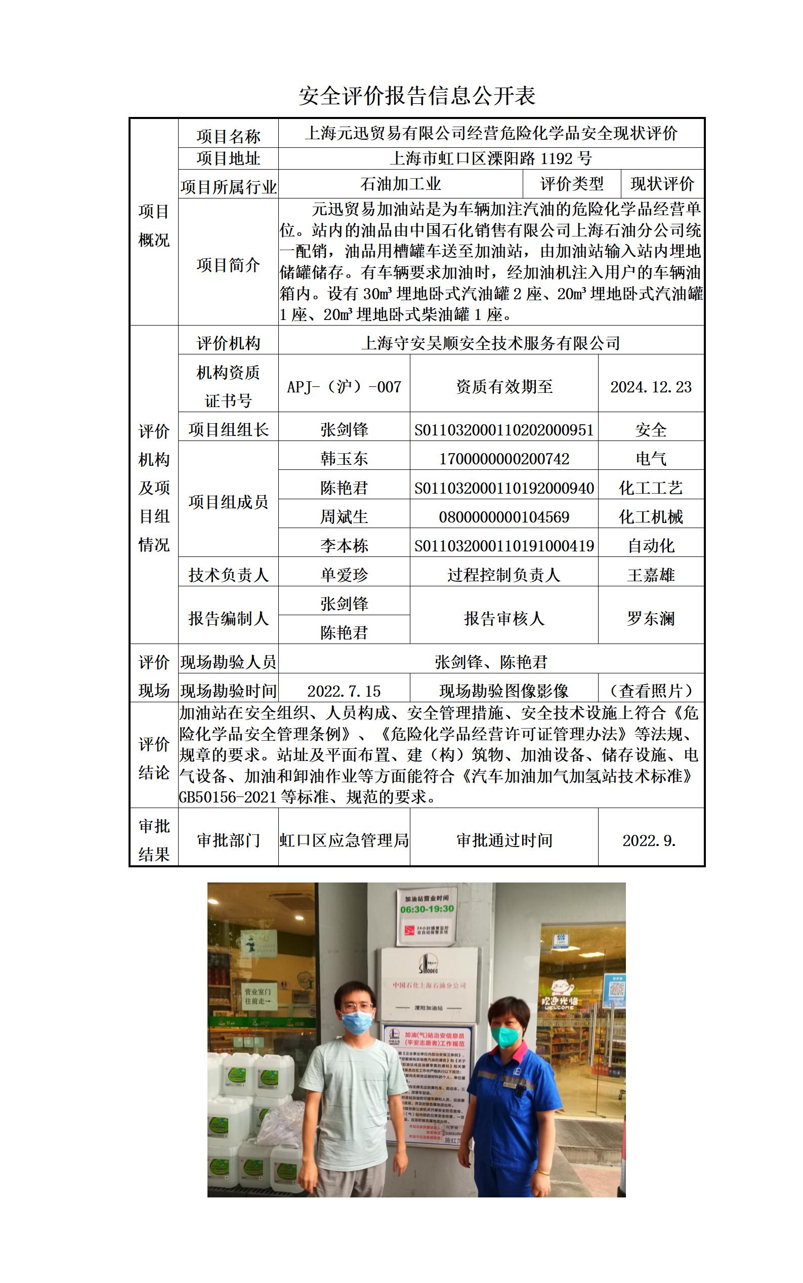 上海元迅贸易有限公司经营危险化学品安全现状评价
