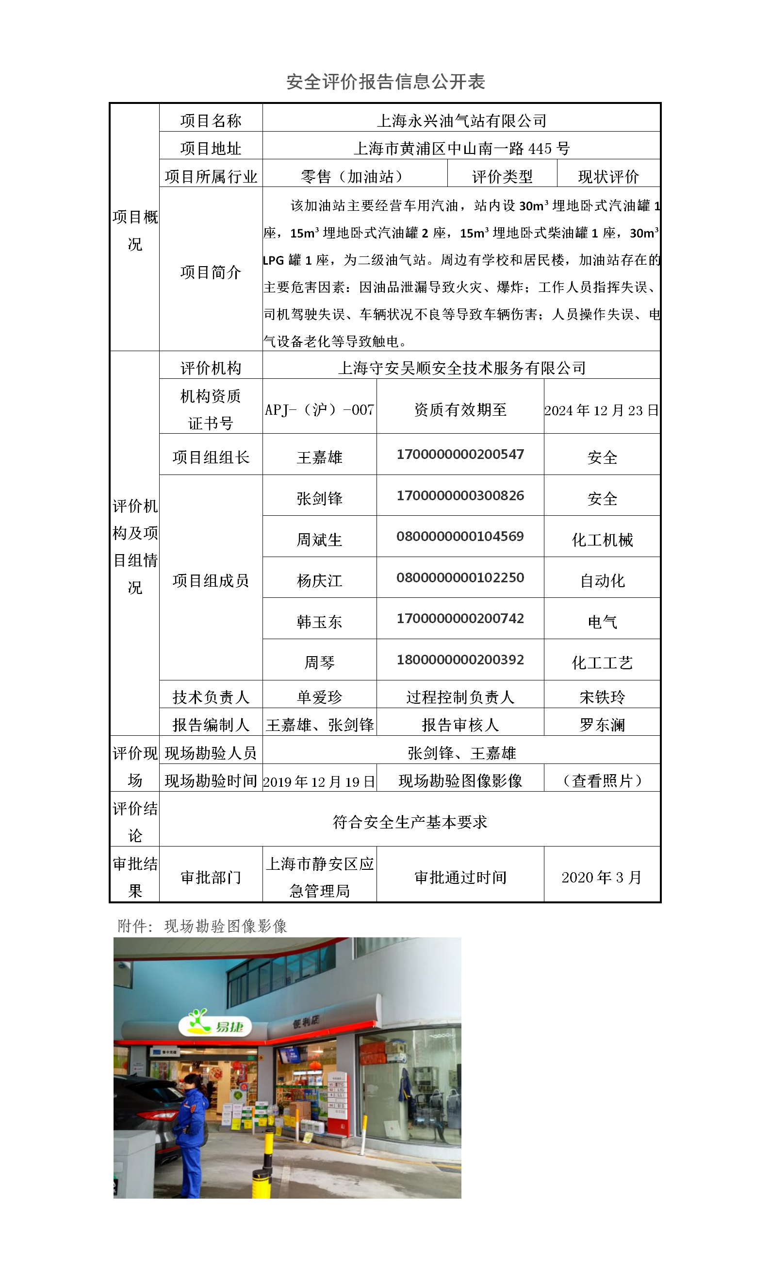 上海永兴油气站有限公司安全现状评价