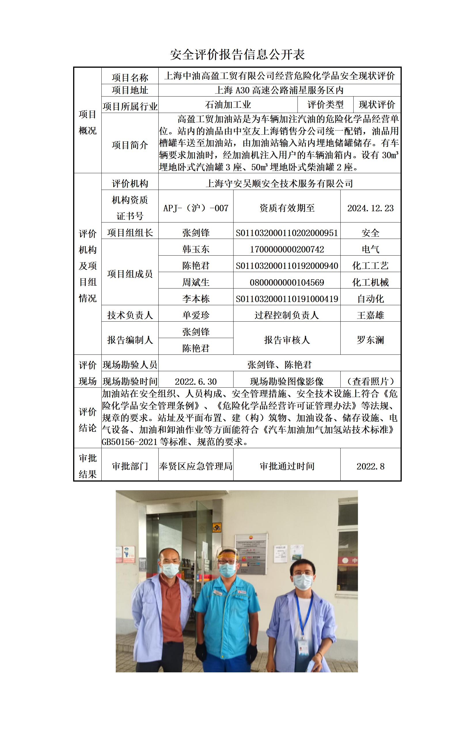 上海中油高盈工贸有限公司经营危险化学品安全现状评价