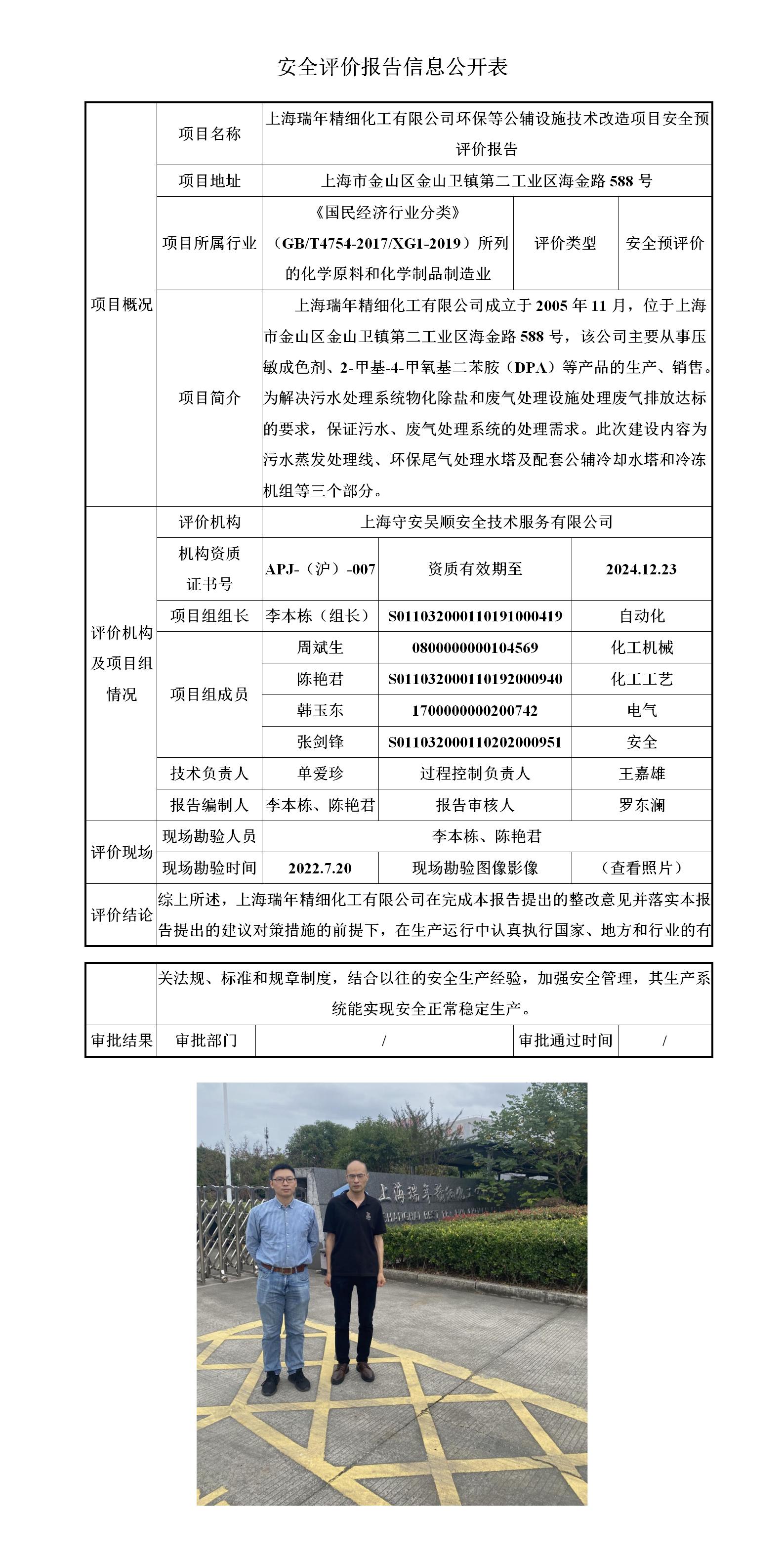 上海瑞年精细化工有限公司环保等公辅设施技术改造项目安全预评价