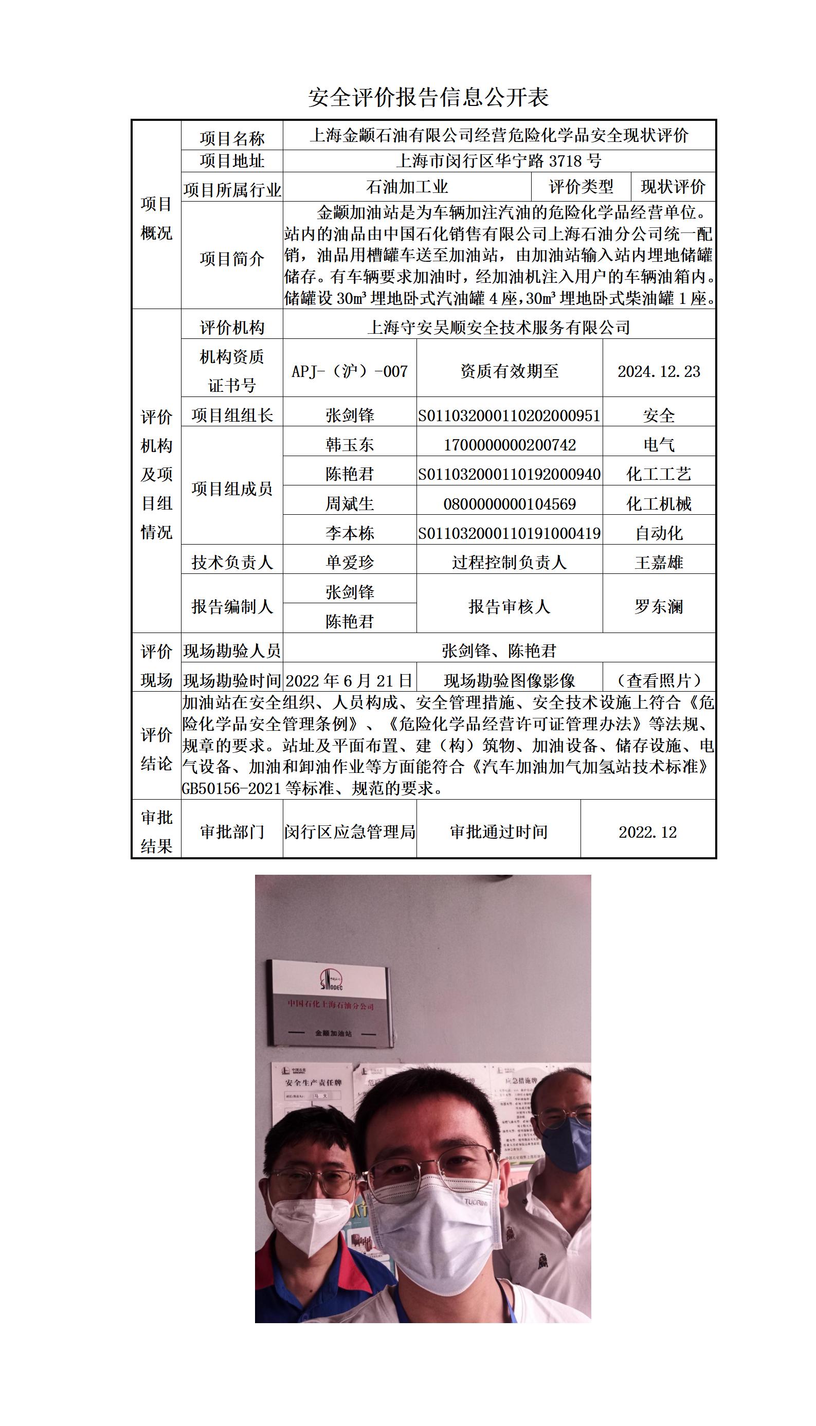 上海金颛石油有限公司经营危险化学品安全现状评价