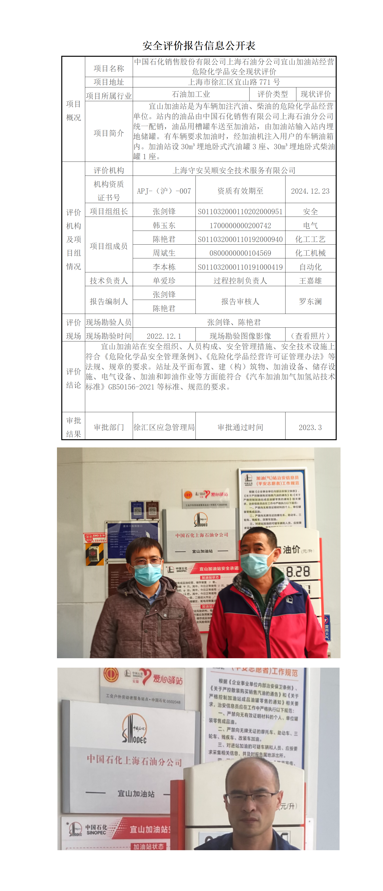 中国石化销售股份有限公司上海石油分公司宜山加油站经营危险化学品安全现状评价