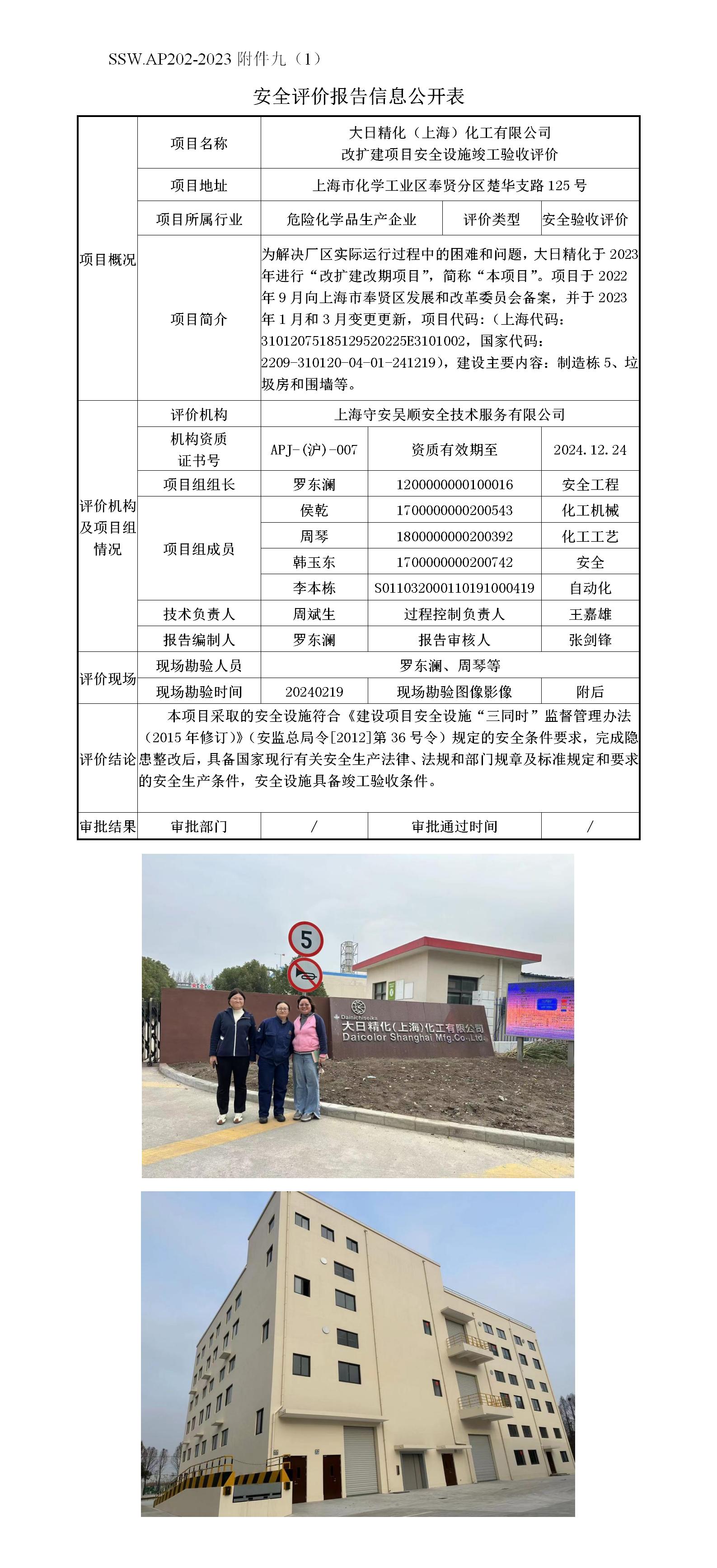 大日精化(上海)化工有限公司改扩建项目安全设施竣工验收评价