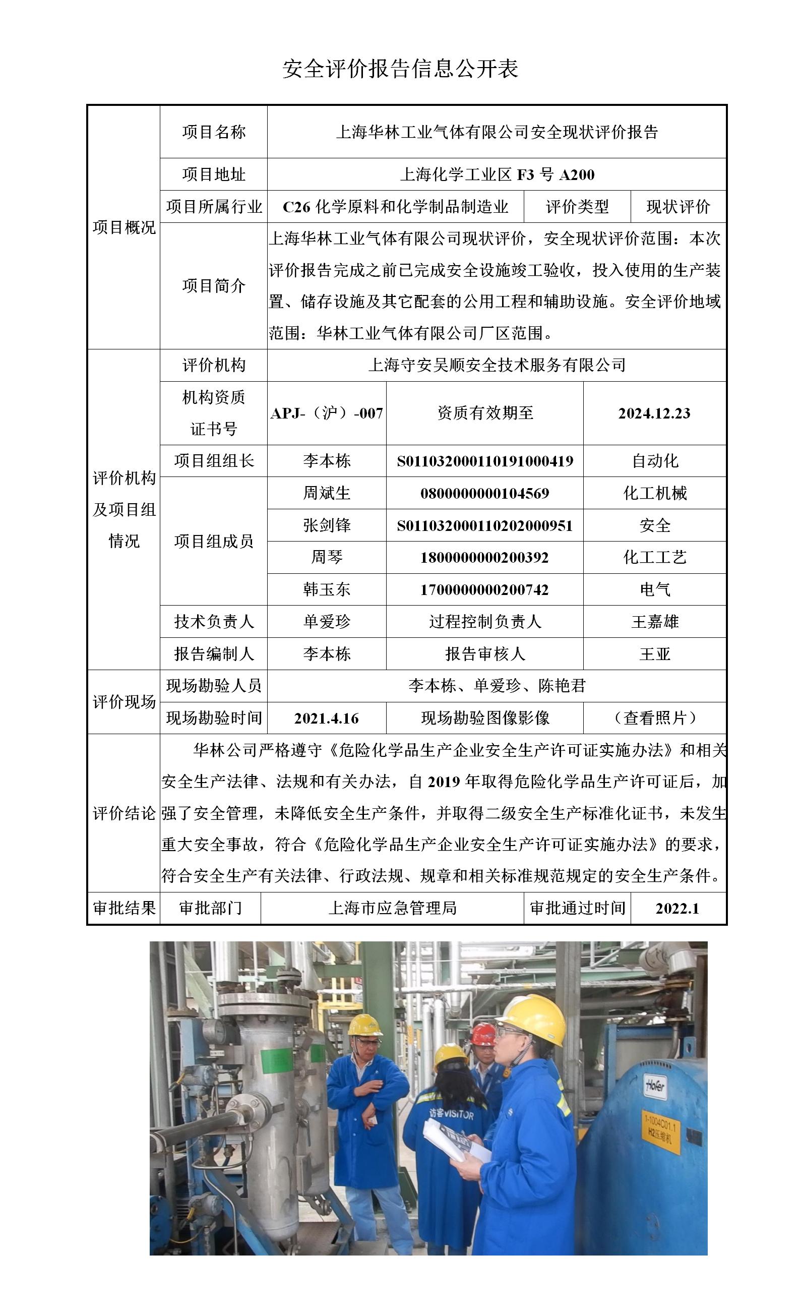 上海华林工业气体有限公司安全现状评价报告