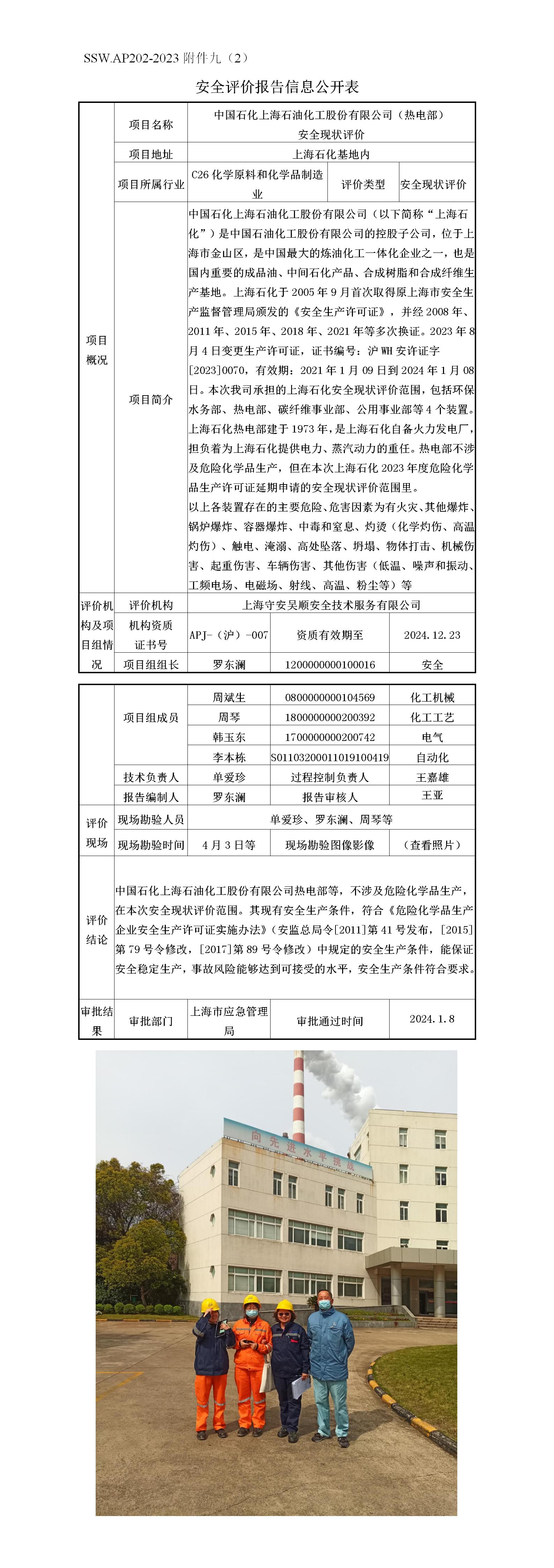 中国石化上海石油化工股份有限公司(热电部)安全现状评价