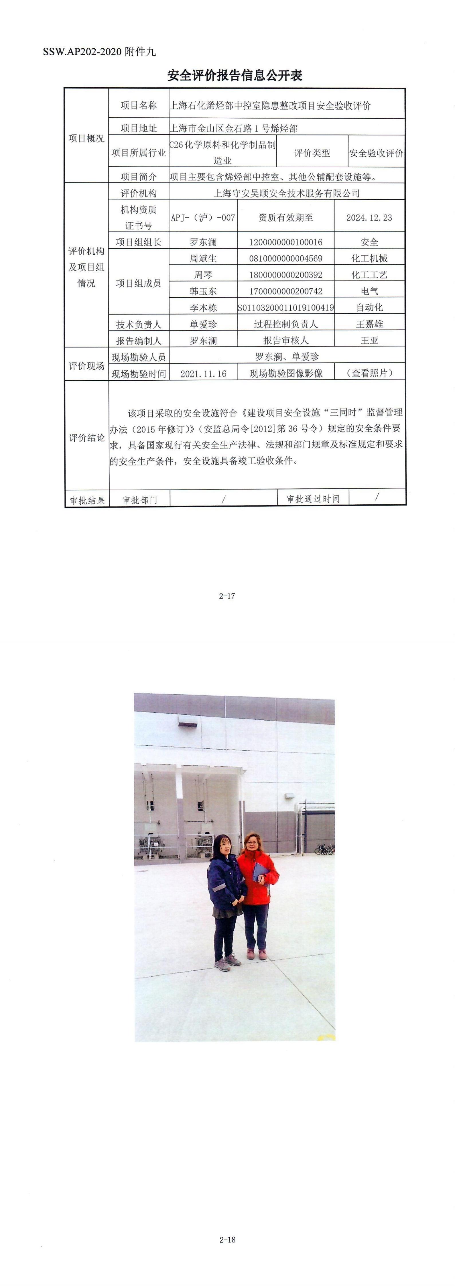 上海石化烯烃部中控室隐患整改项目安全验收评价