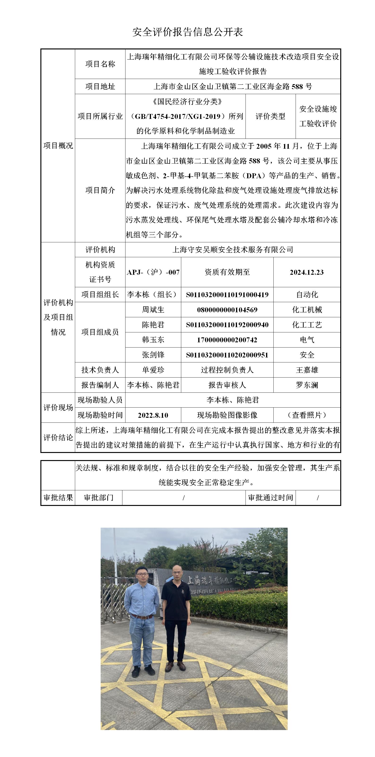 上海瑞年精细化工有限公司环保等公辅设施技术改造项目安全设施竣工验收评价报告