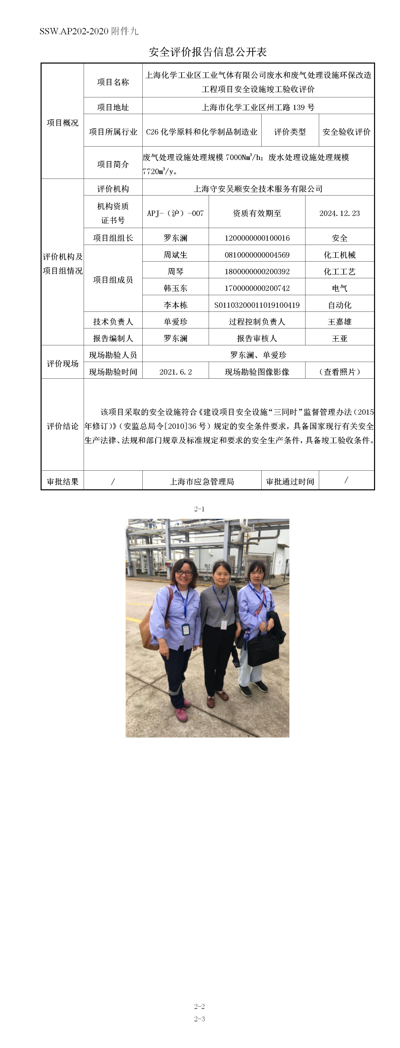 上海化学工业区工业气体有限公司废水和废气处理设施环保改造工程项目安全设施竣工验收评价