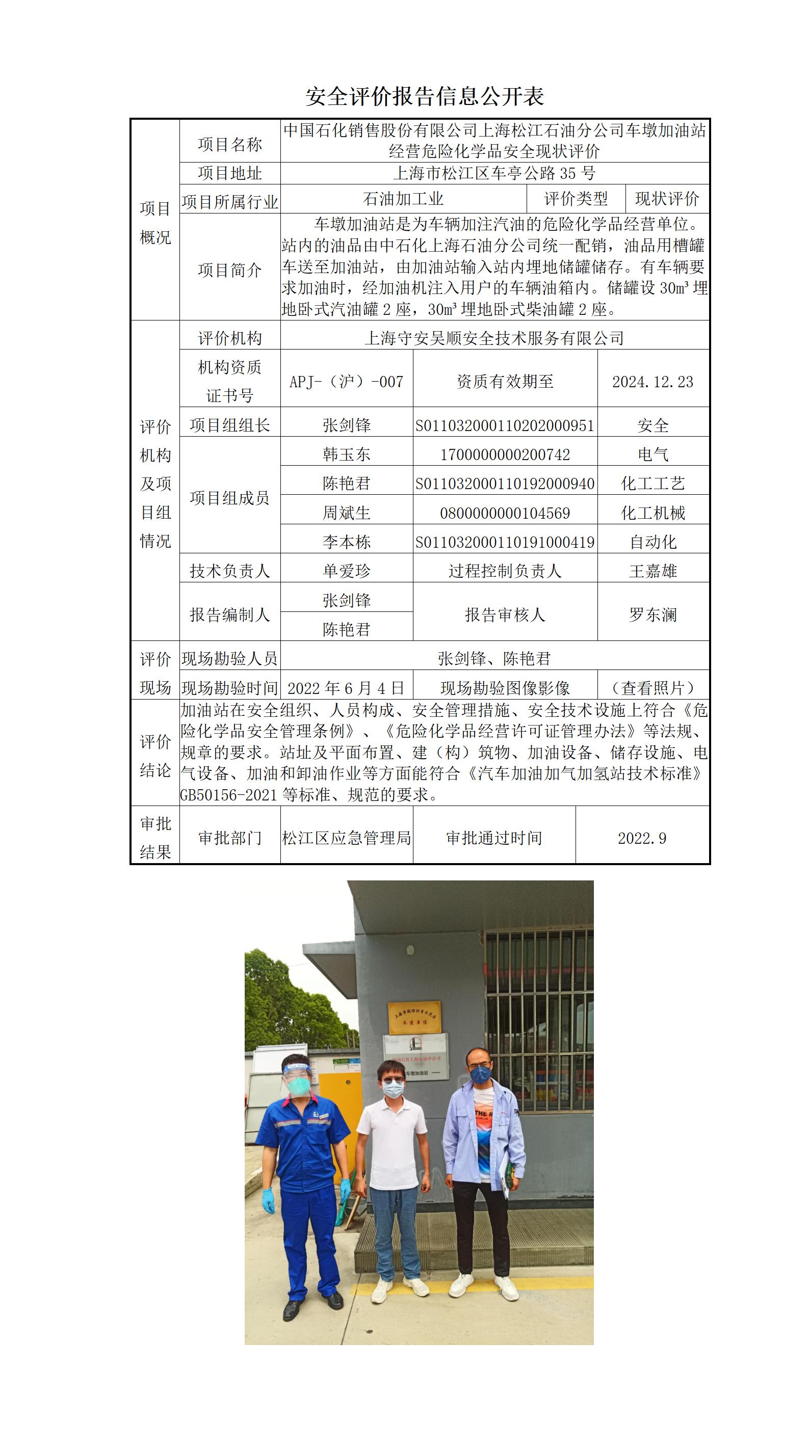 中国石化销售股份有限公司上海松江石油分公司车墩加油站经营危险化学品安全现状评价