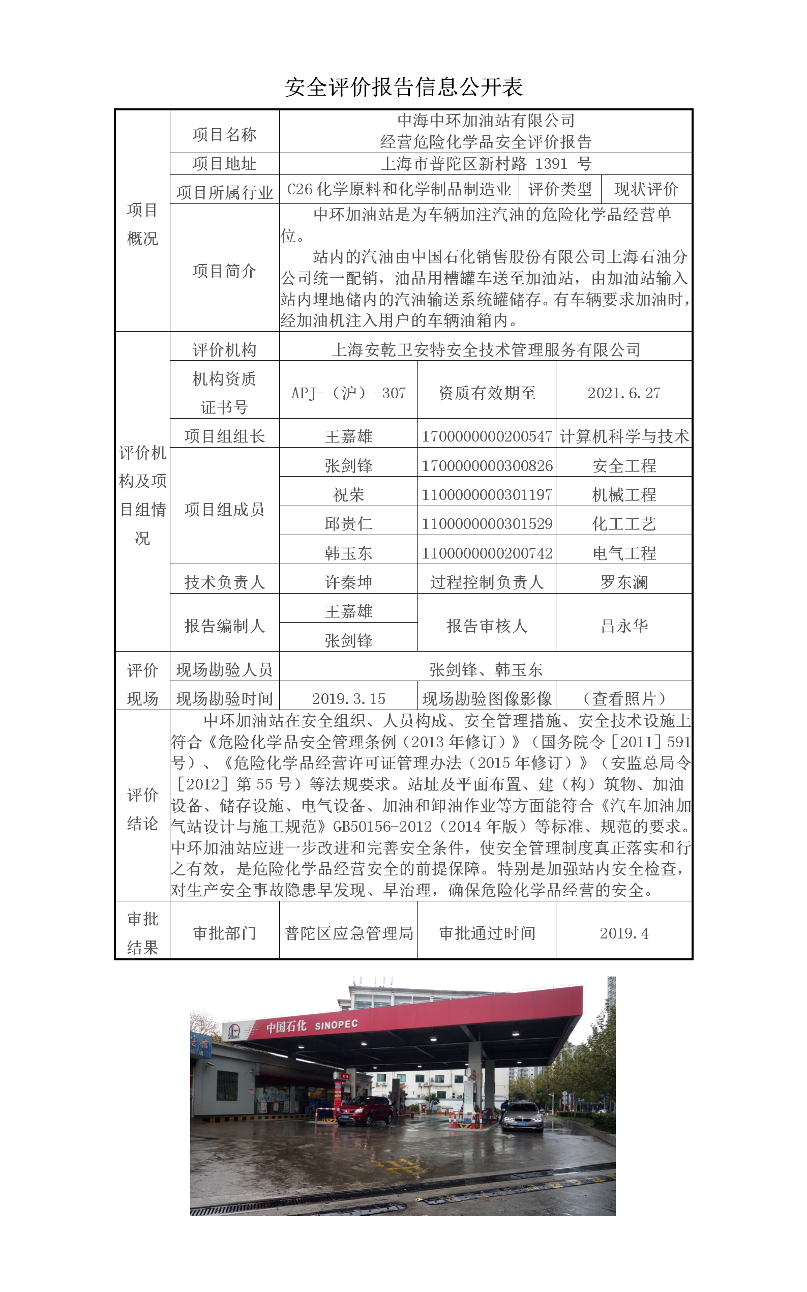 中海中环加油站有限公司经营危险化学品安全评价报告