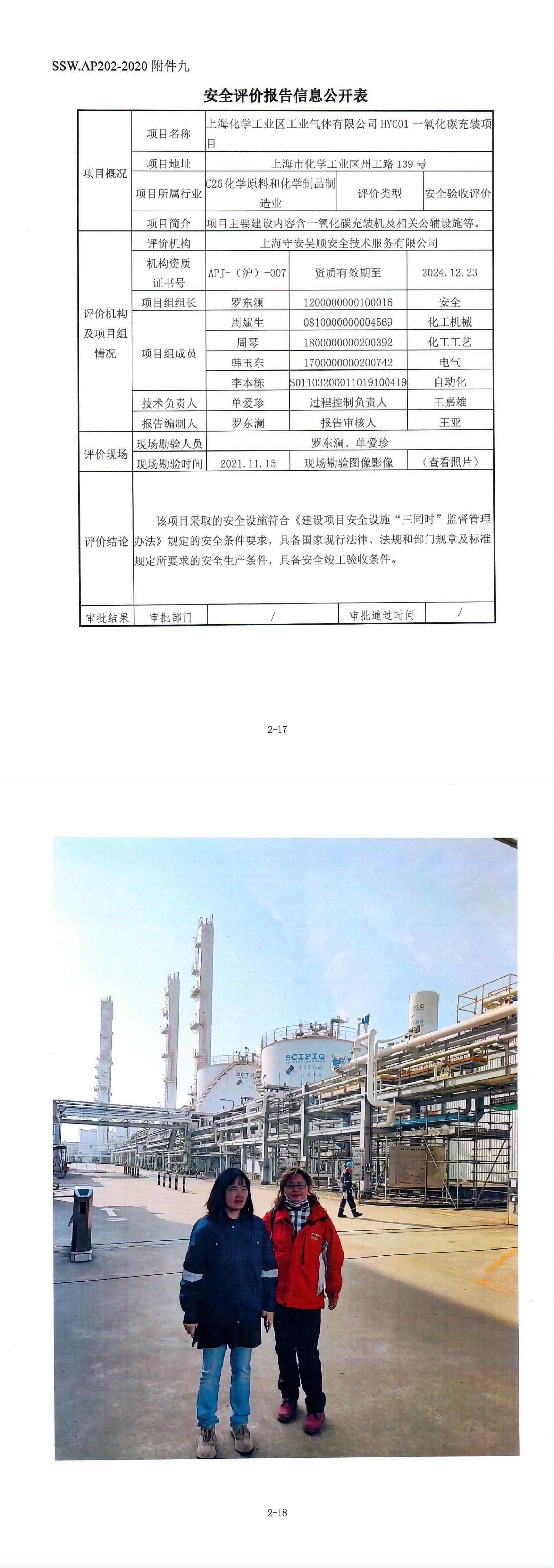 上海化学工业区工业气体有限公司HYC01一氧化碳充装项目
