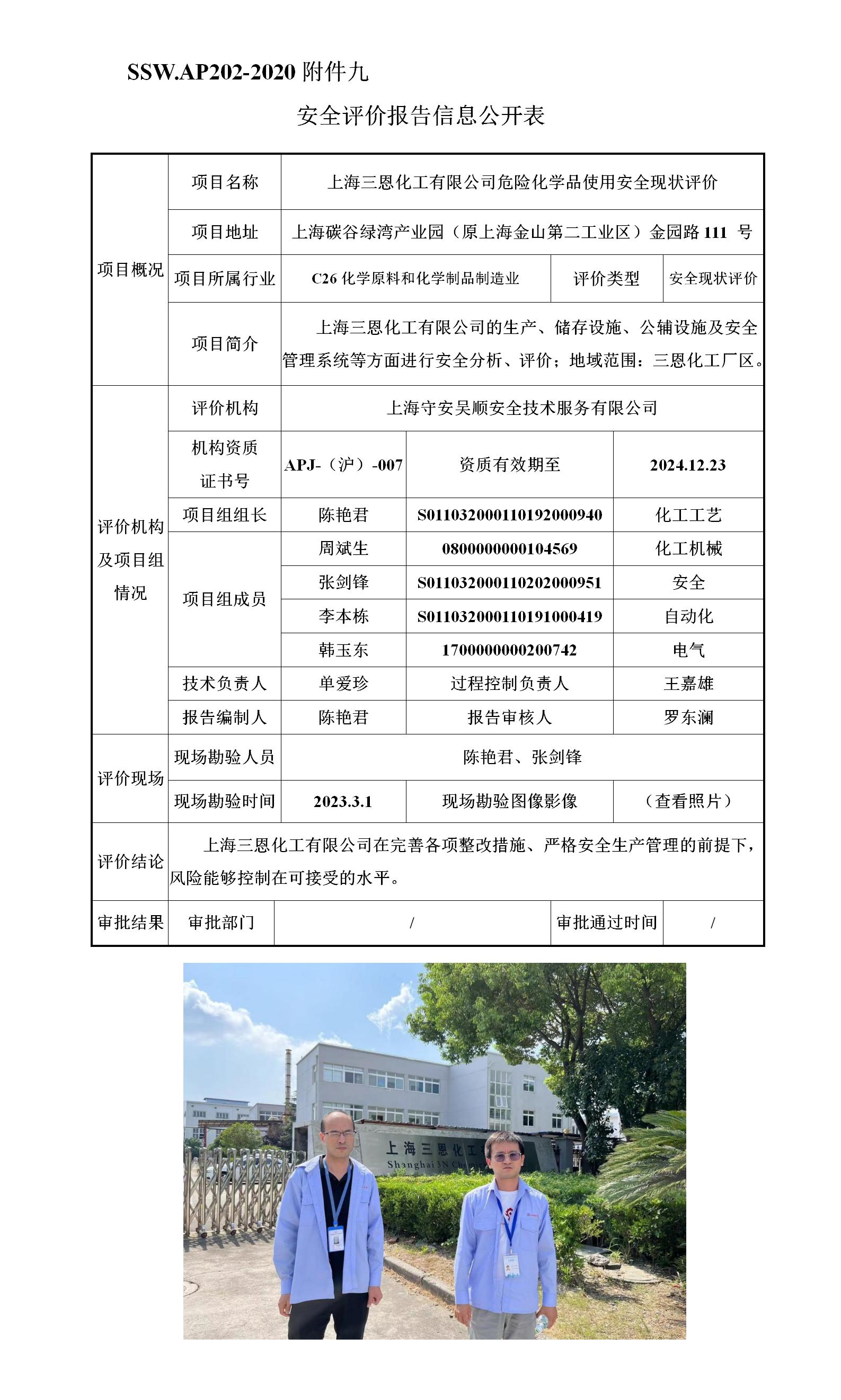 上海三恩化工有限公司危险化学品使用安全现状评价