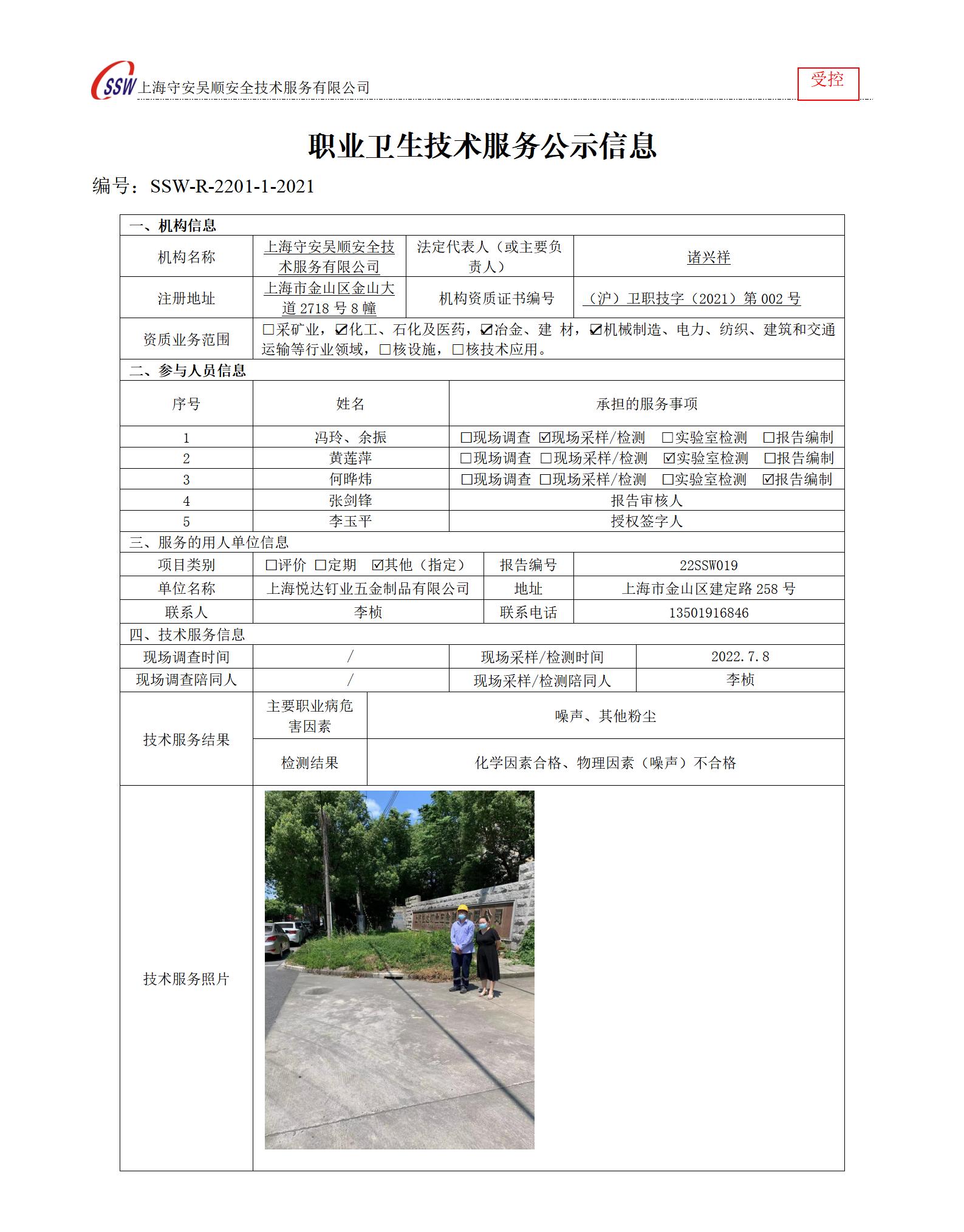 上海悦达钉业五金制品有限公司检测