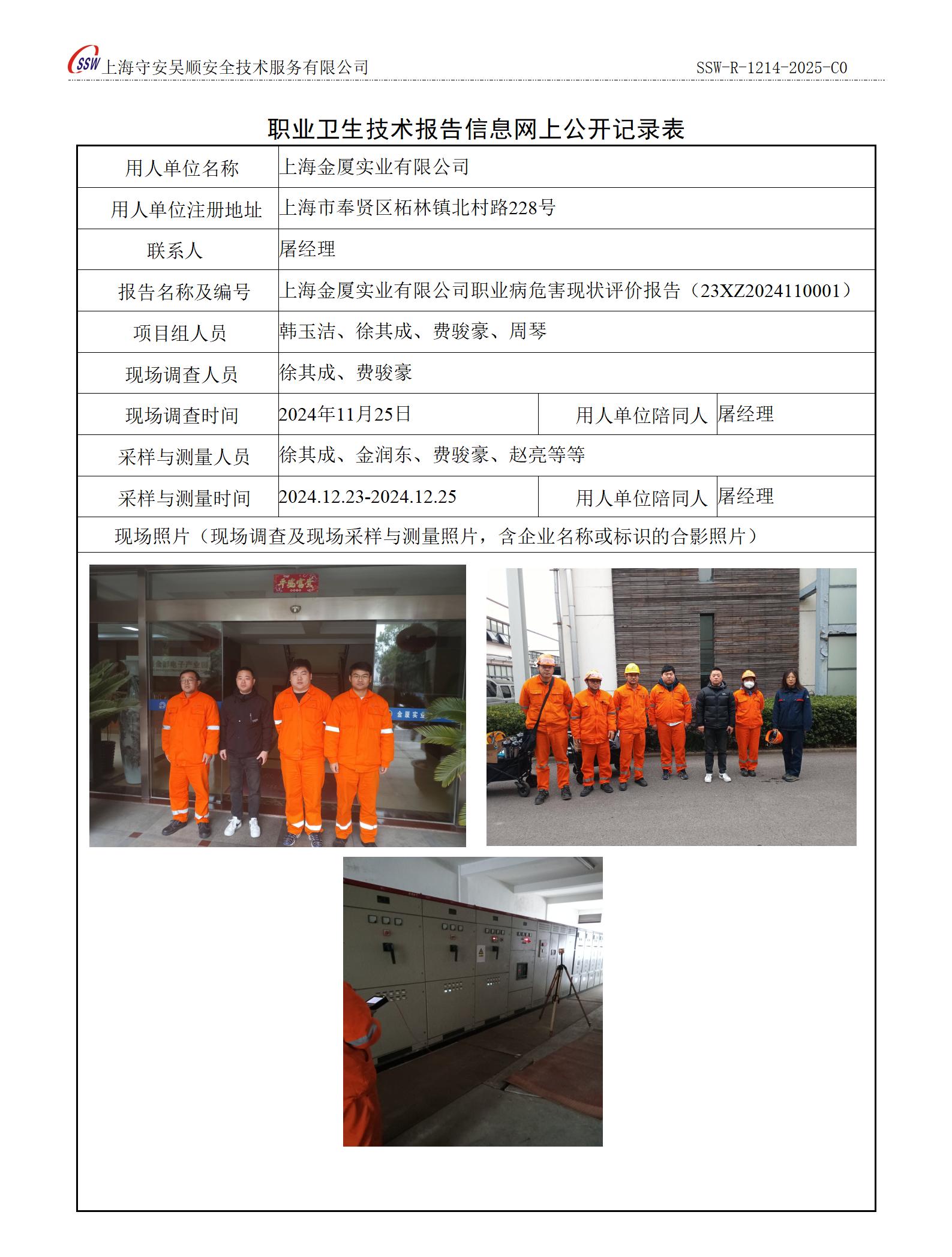 上海金厦实业有限公司职业病危害现状评价