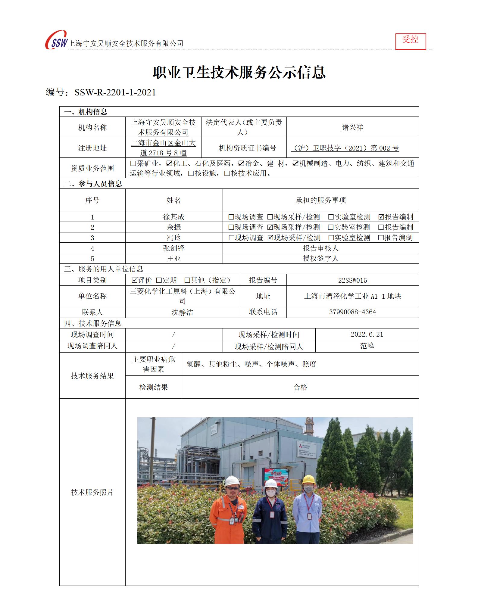 三菱化学化工原料(上海)有限公司助剂仓库项目检测