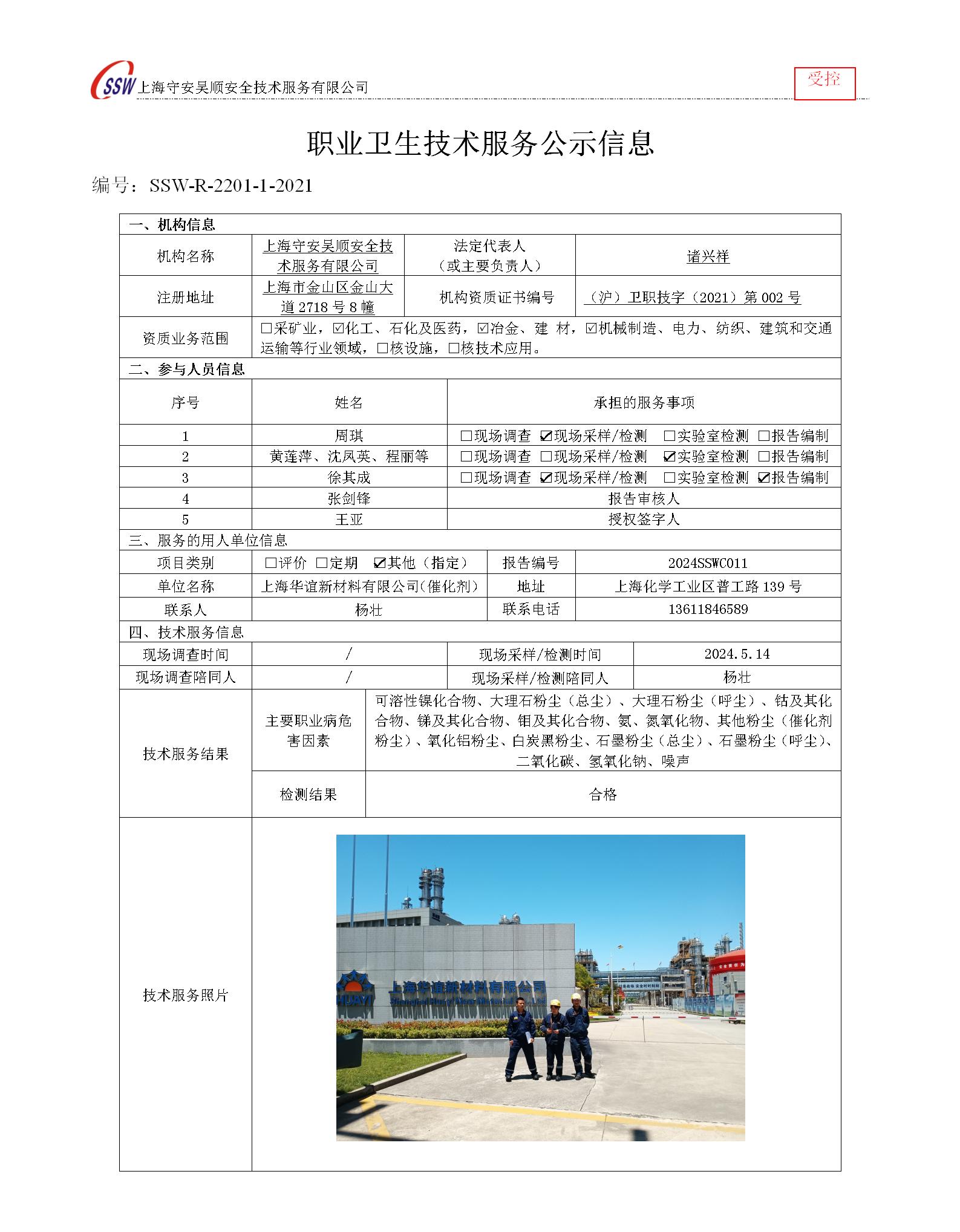 上海华谊新材料有限公司(催化剂)检测