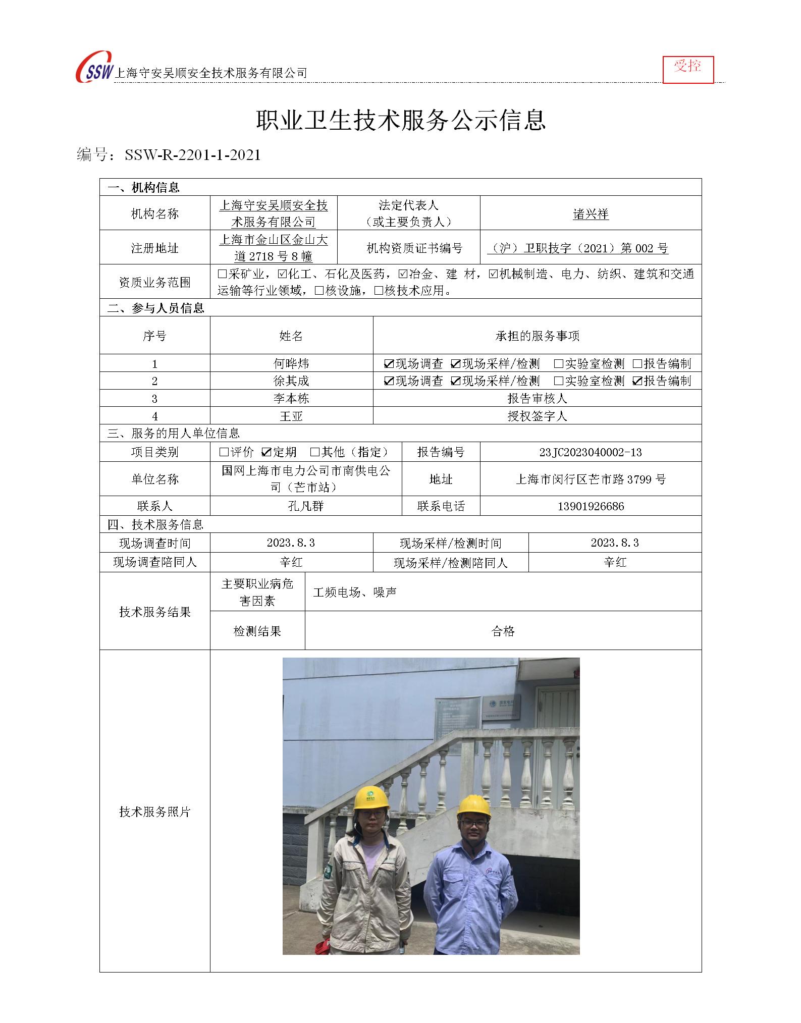 国网上海市电力公司市南供电公司(芒市站)检测