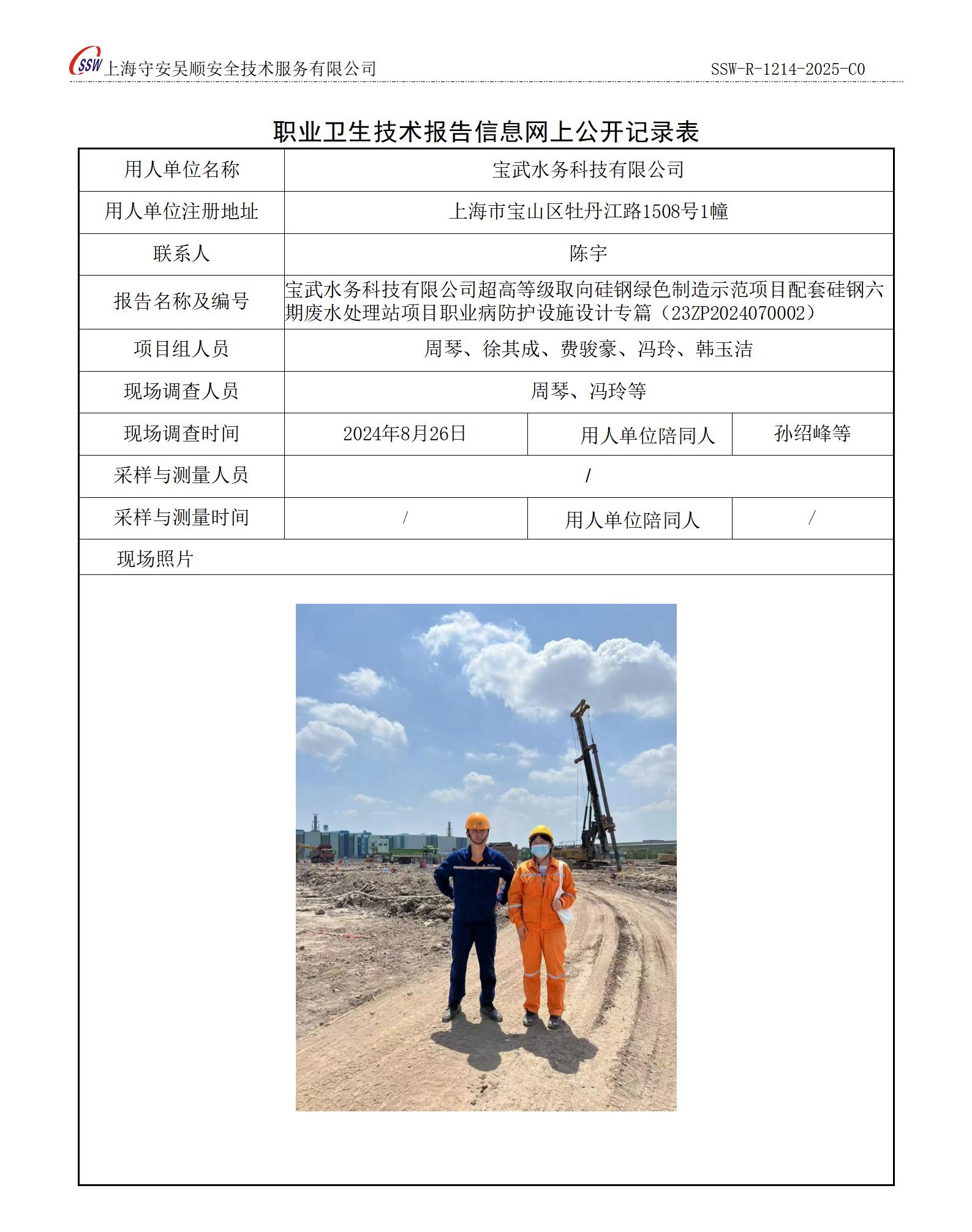宝武水务科技有限公司超高等级取向硅钢绿色制造示范项目配套硅钢六期废水处理站项目职业病防护设施设计专篇