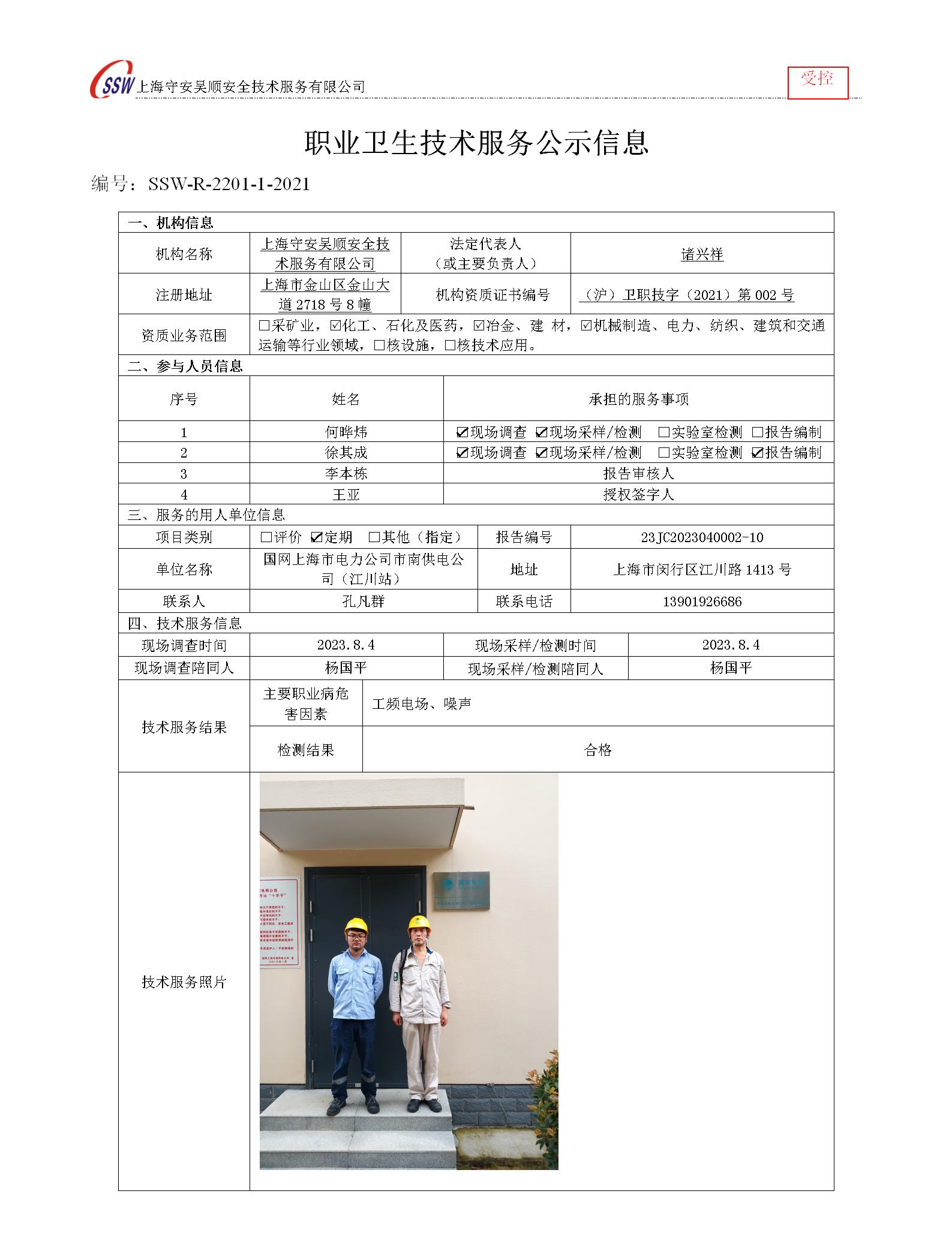 国网上海市电力公司市南供电公司(江川站)检测