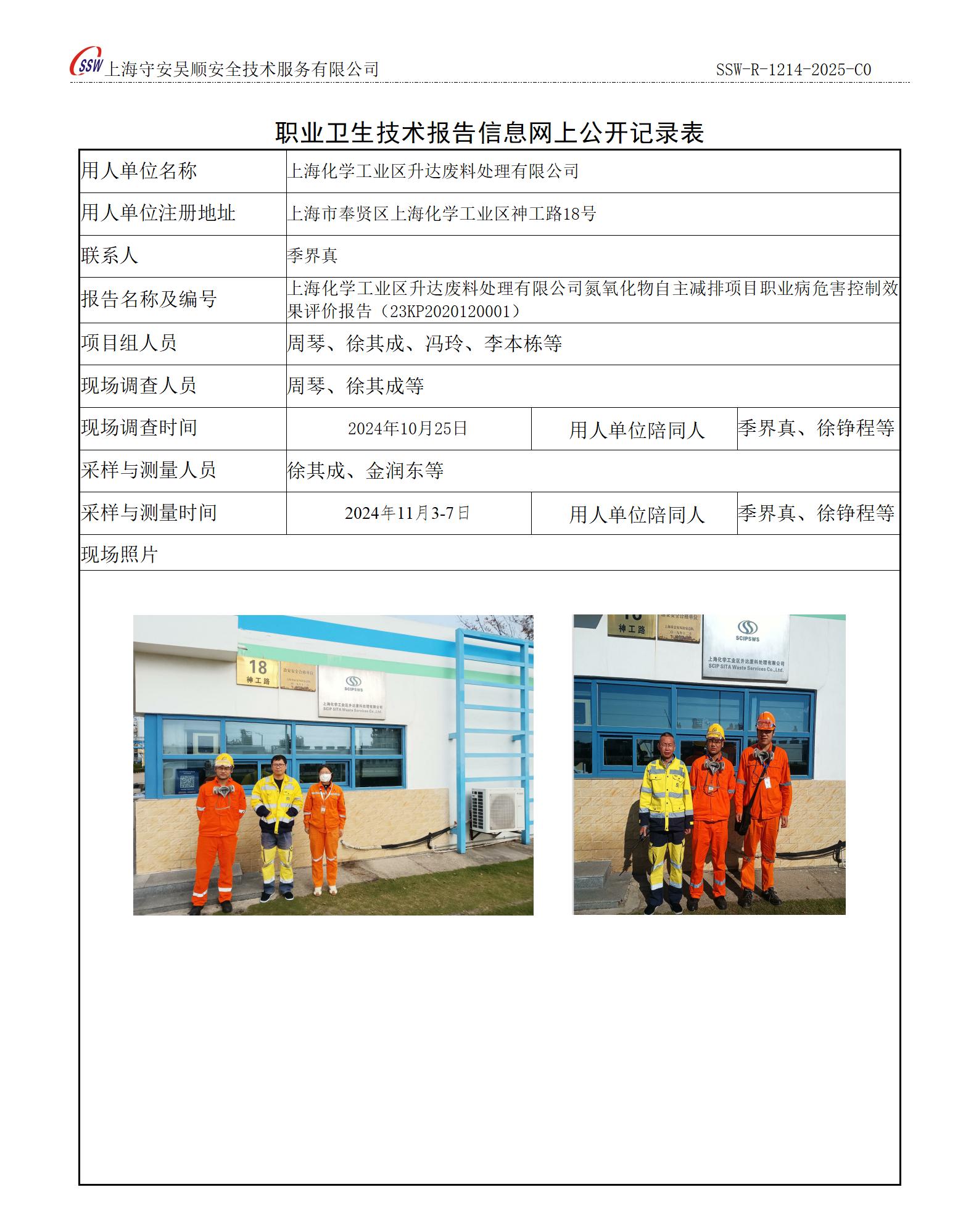 上海化学工业区升达废料处理有限公司氮氧化物自主减排项目职业病危害控制效果评价