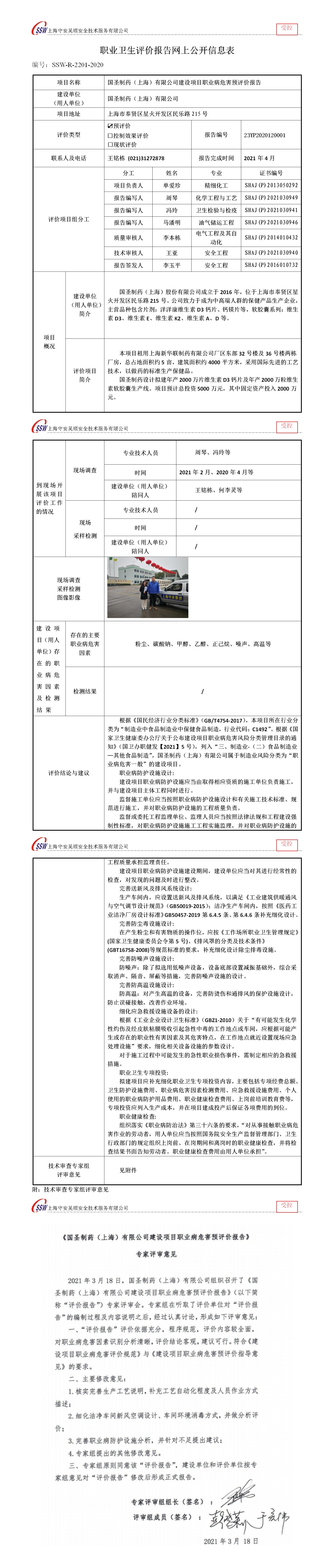 国圣制药(上海)有限公司建设项目职业病危害预评价报告