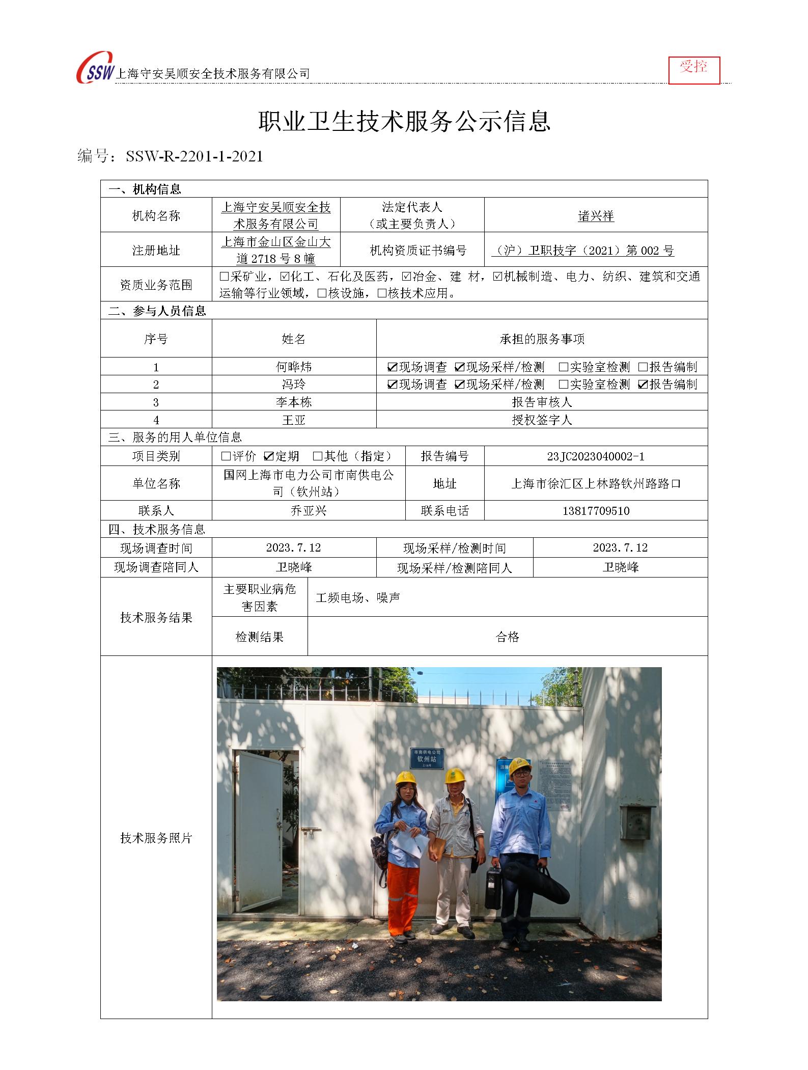 国网上海市电力公司市南供电公司(钦州站)检测