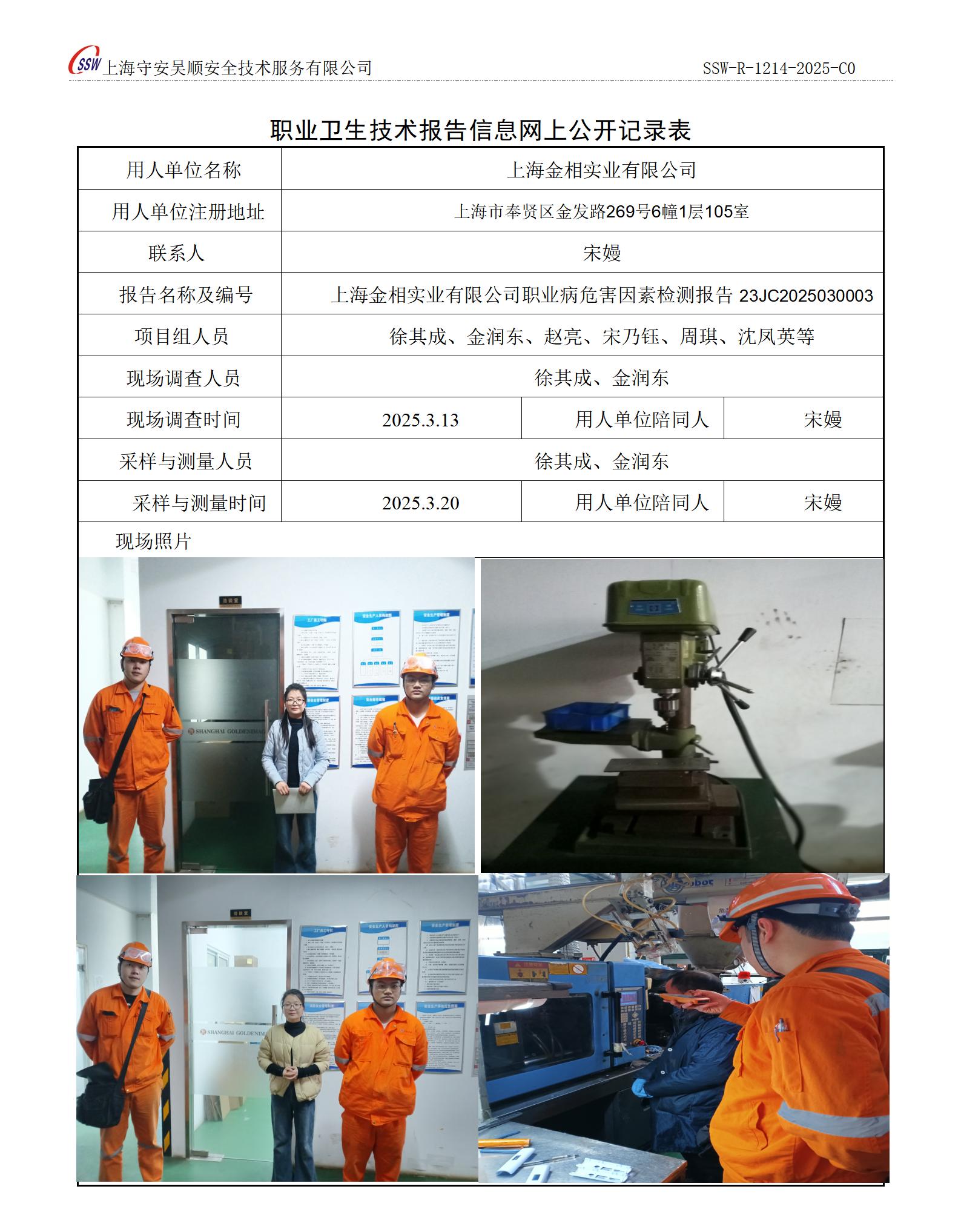 上海金相实业有限公司职业病危害因素定期检测