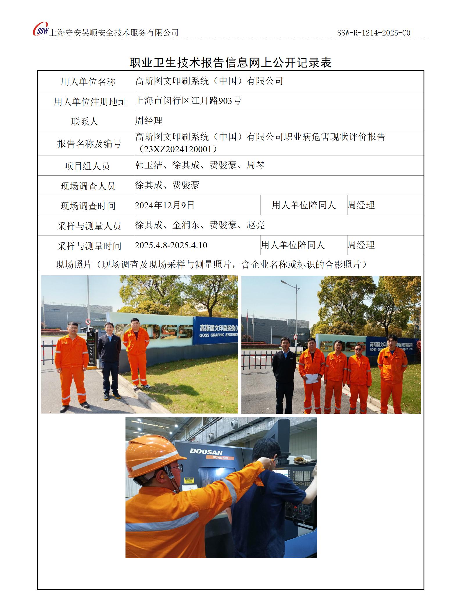高斯图文印刷系统(中国)有限公司职业病危害现状评价