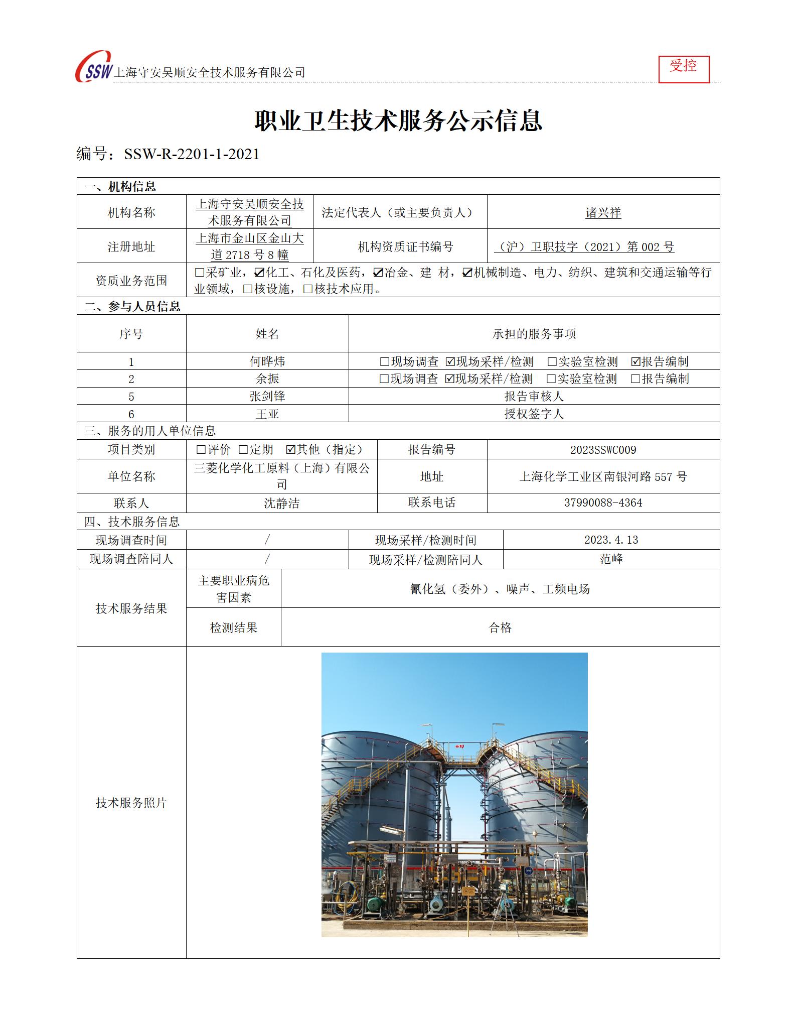 三菱化学化工原料(上海)有限公司检测