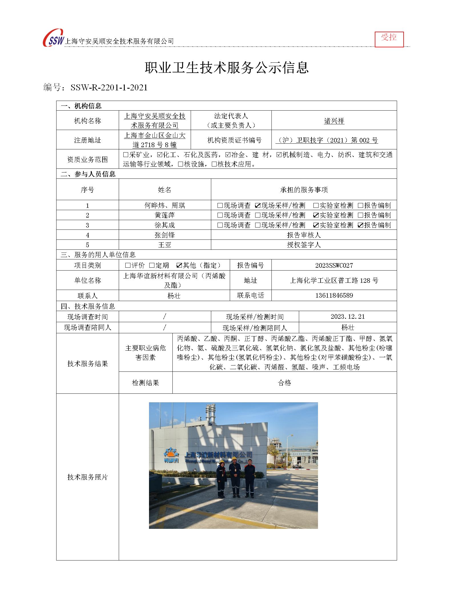 上海华谊新材料有限公司(丙烯酸及酯)检测