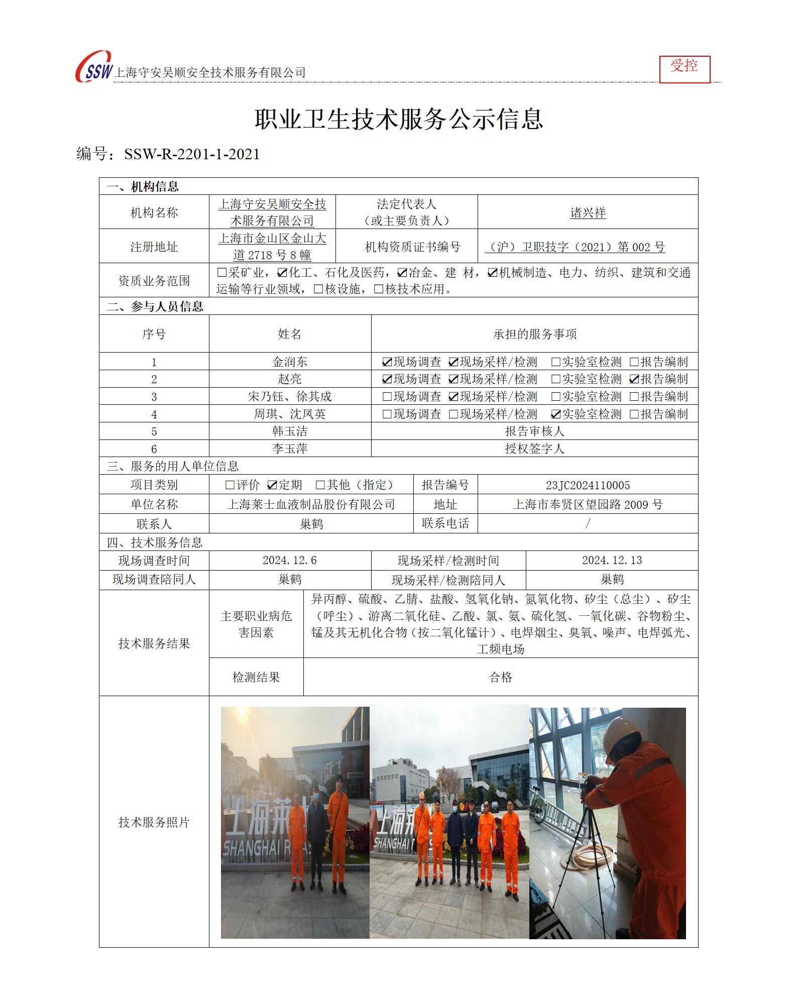 上海莱士血液制品股份有限公司定期检测