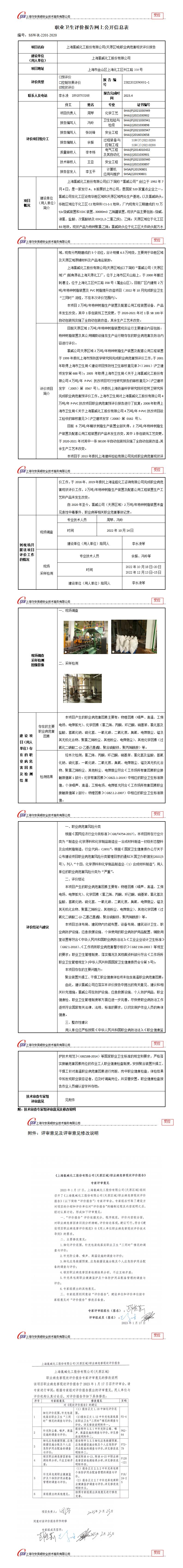 上海氯碱化工股份有限公司(天原区域)职业病危害现状评价