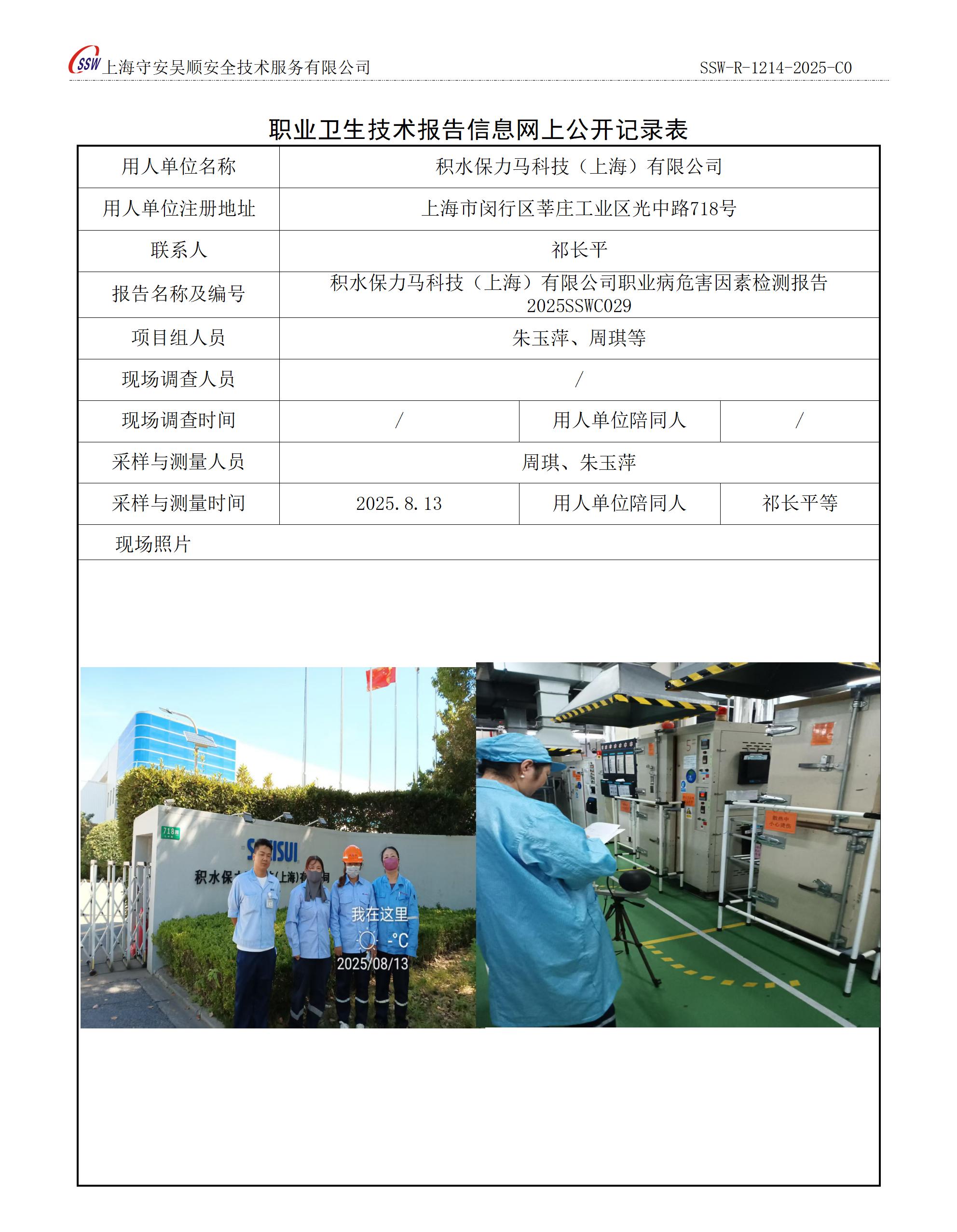 积水保力马科技(上海)有限公司职业病危害因素检测