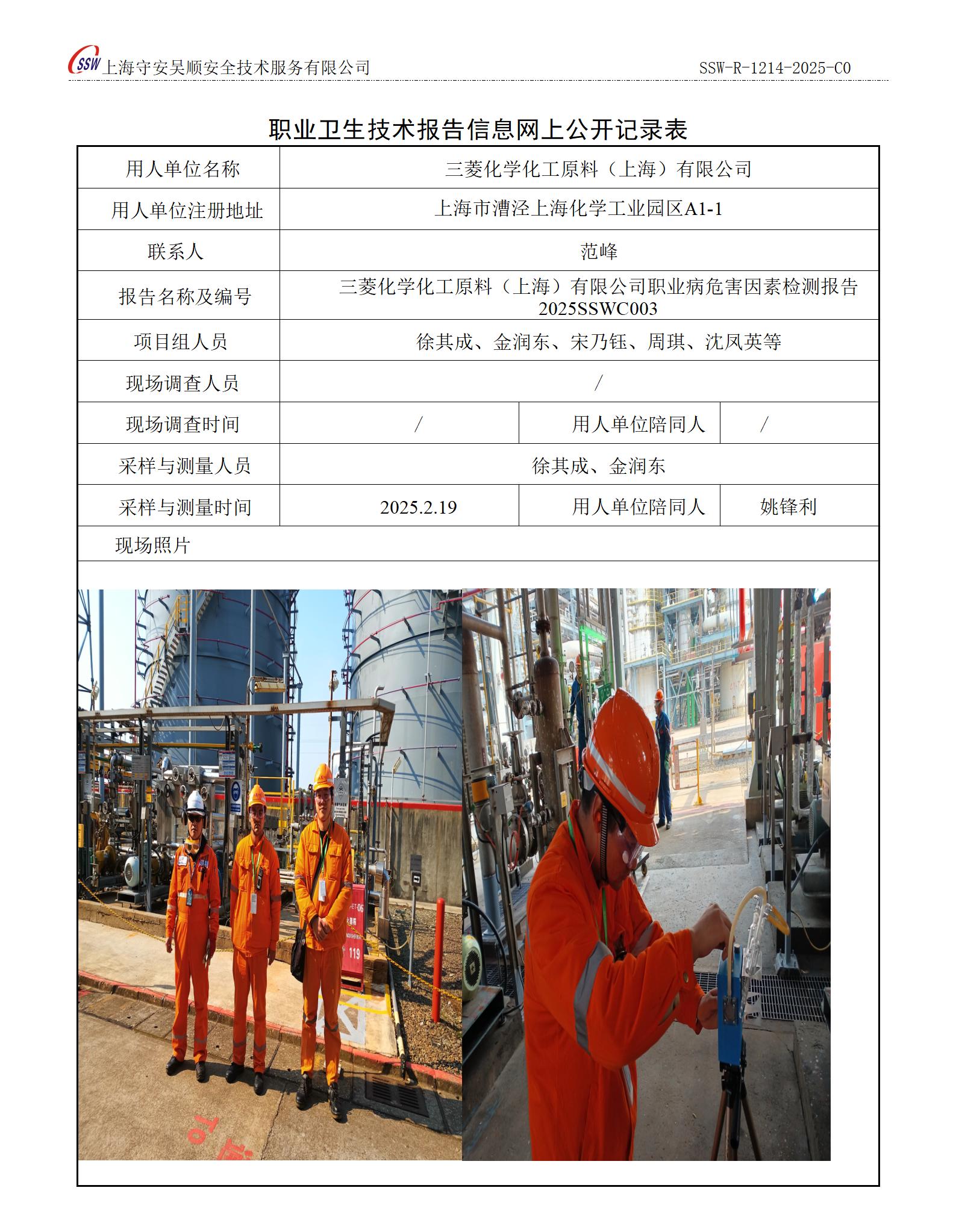三菱化学化工原料(上海)有限公司2月月度检测