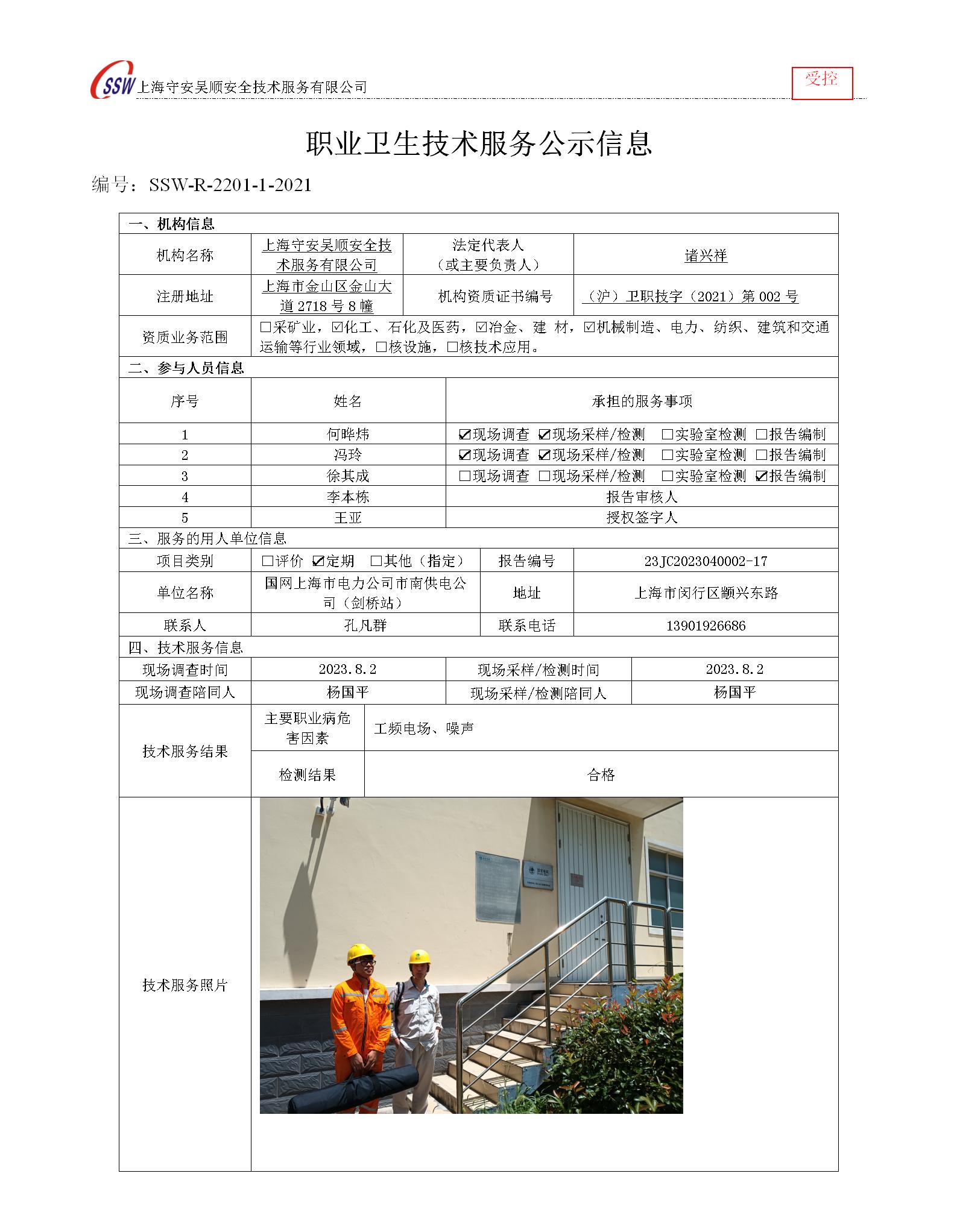 国网上海市电力公司市南供电公司(剑桥站)检测