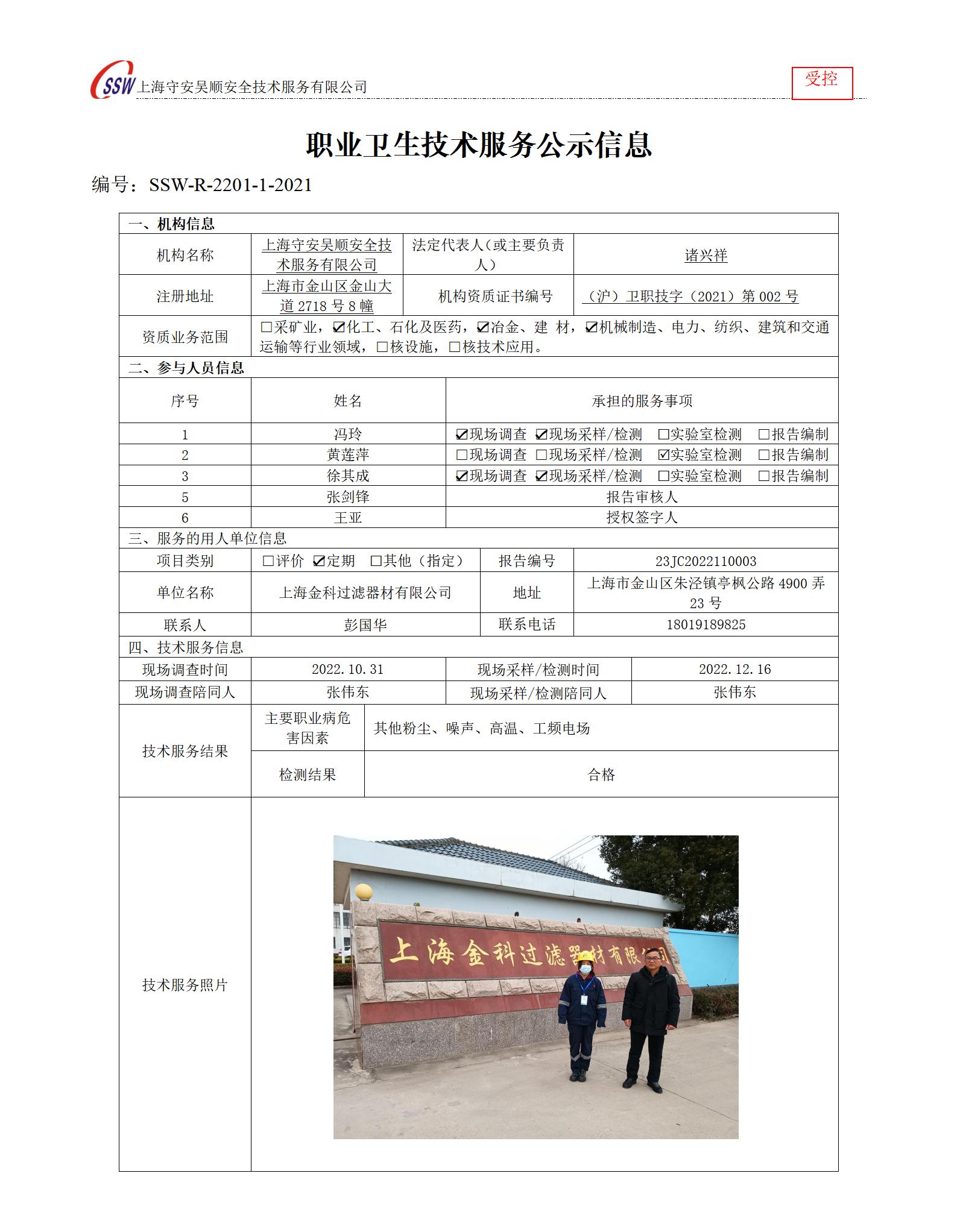 上海金科过滤器材有限公司检测