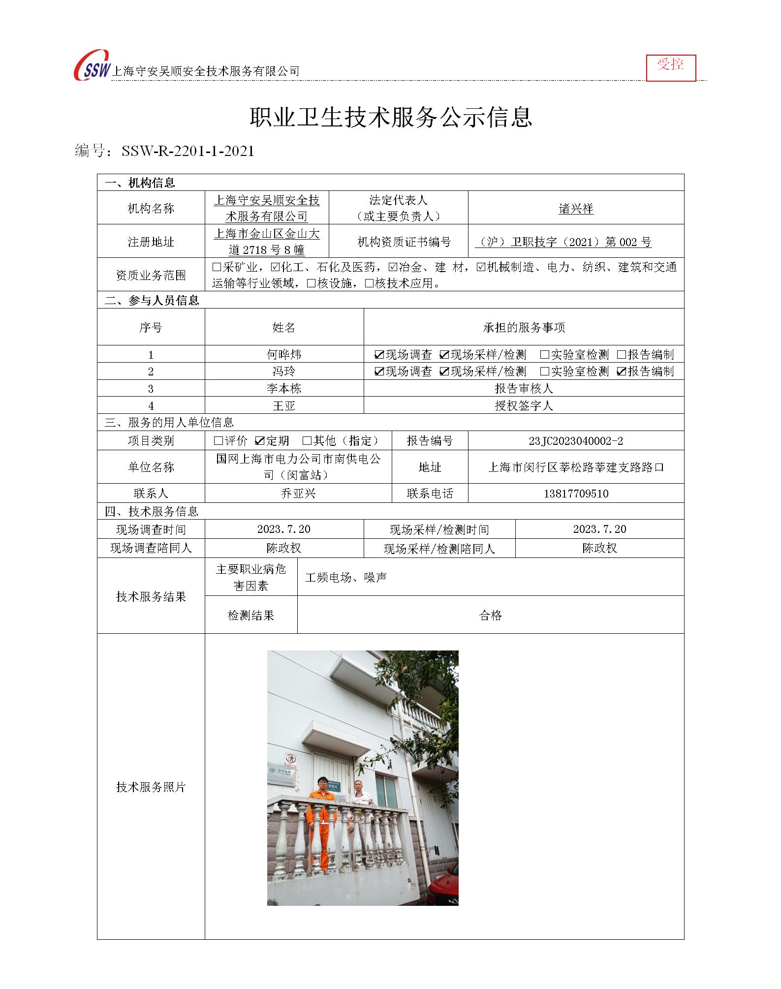 国网上海市电力公司市南供电公司(闵富站)检测