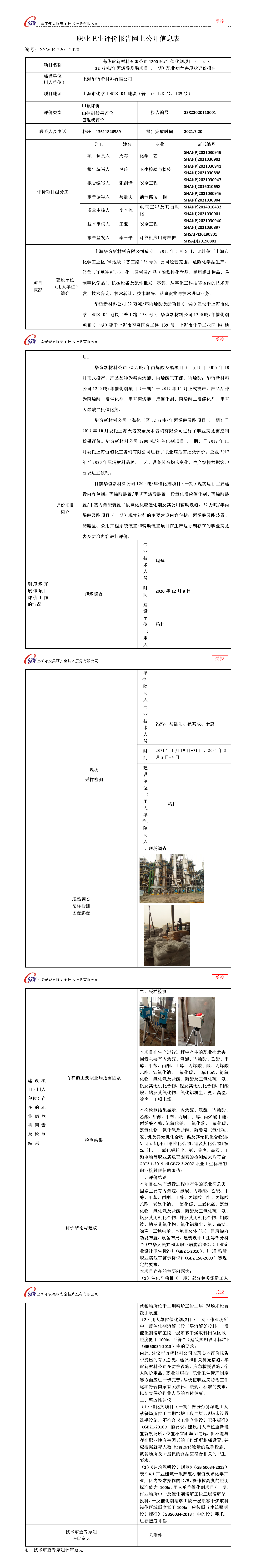 上海华谊新材料有限公司1200吨/年催化剂项目(一期)、 32万吨/年丙烯酸及酯项目(一期)职业病危害现状评价报告