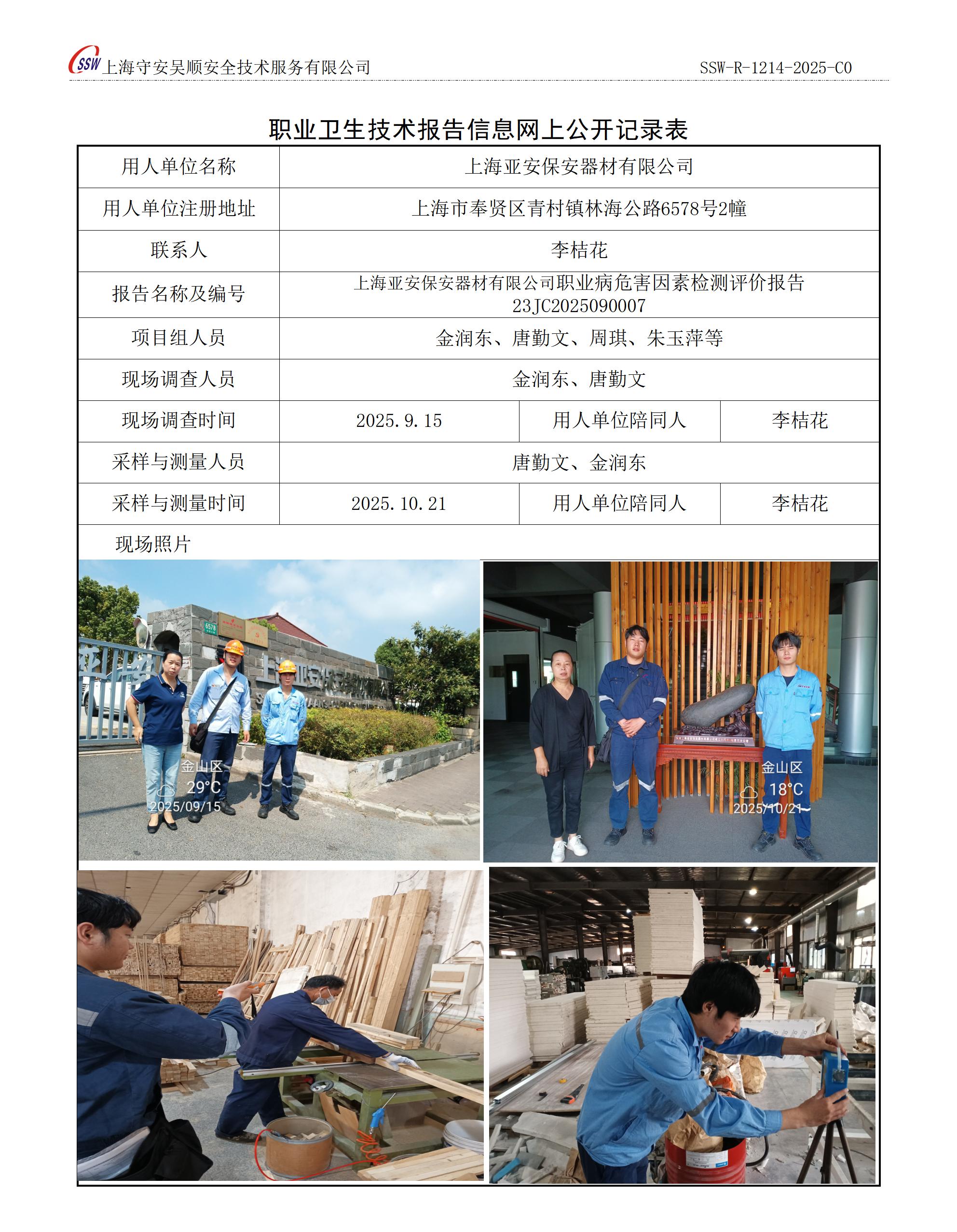 上海亚安保安器材有限公司职业病危害因素定期检测