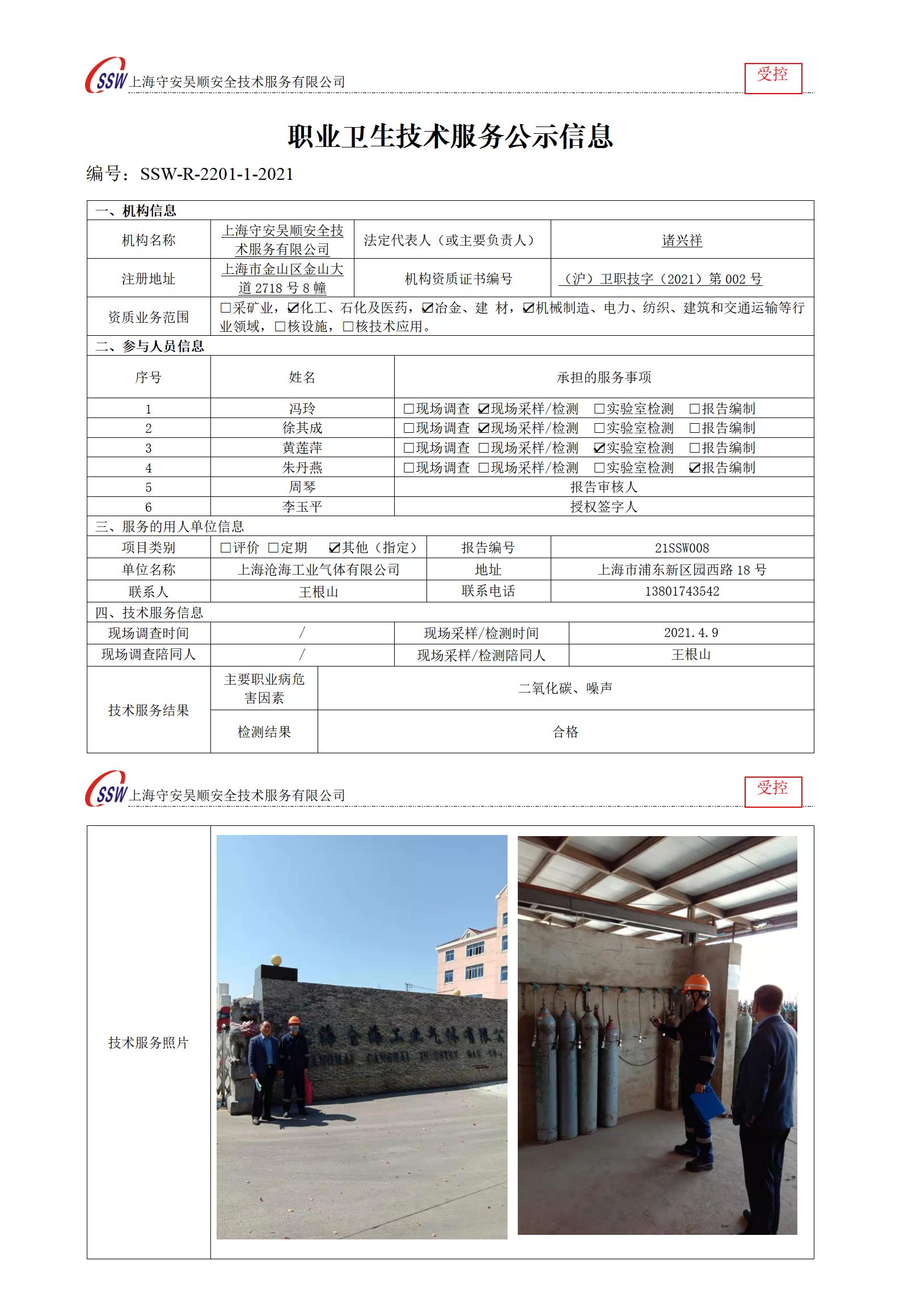 上海沧海工业气体有限公司检测