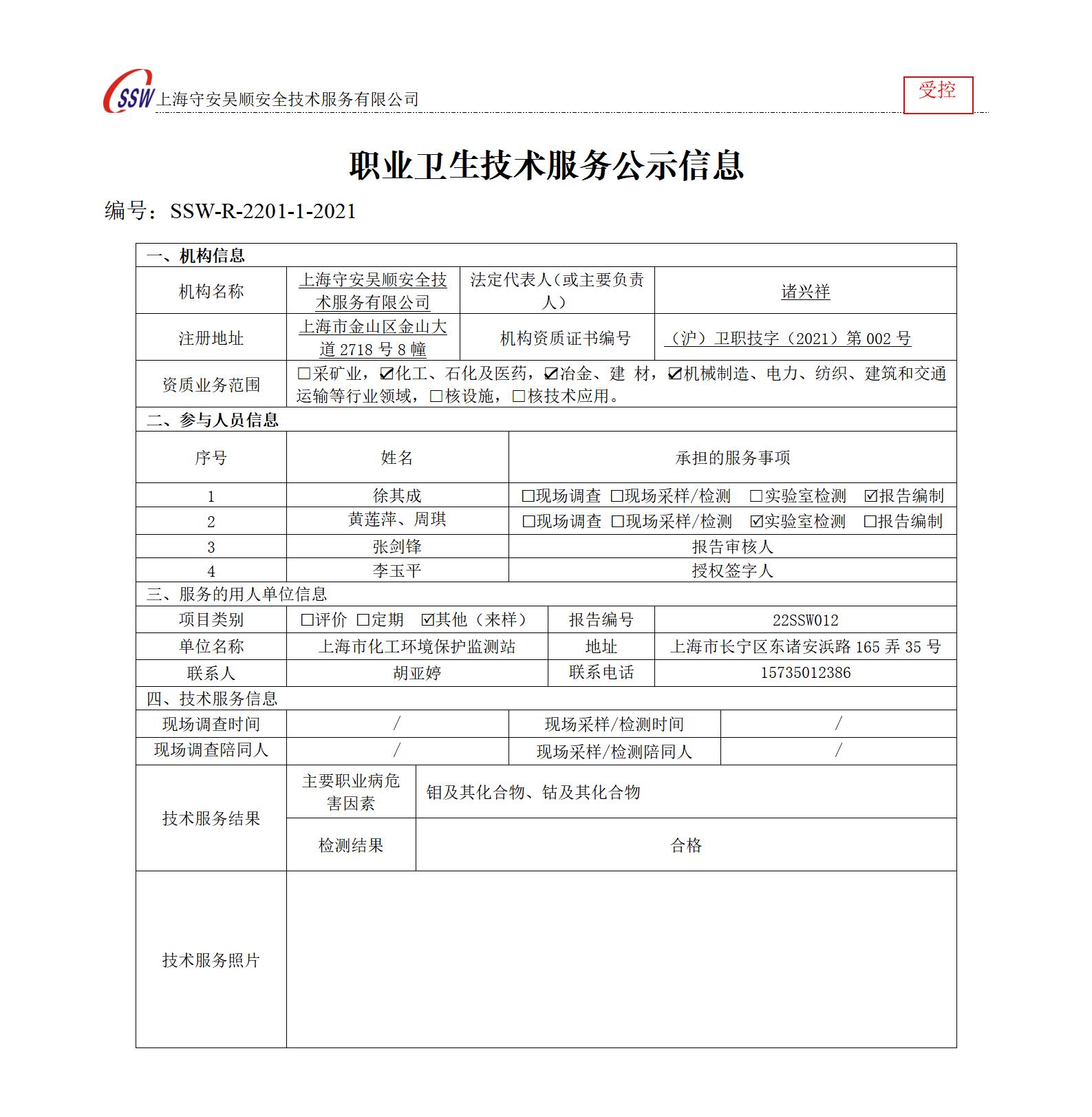 上海化工环境保护监测站检测