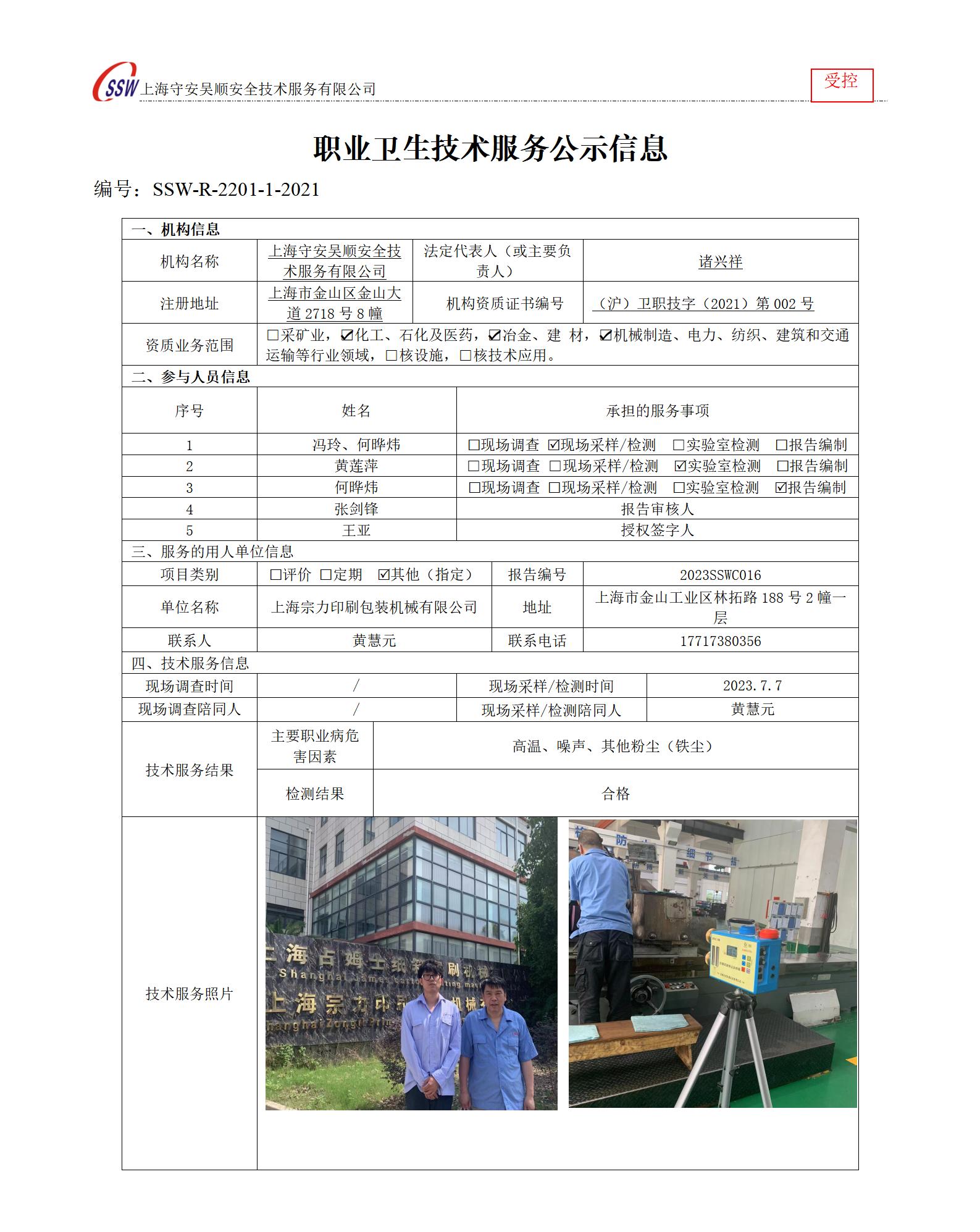 上海宗力印刷包装机械有限公司检测